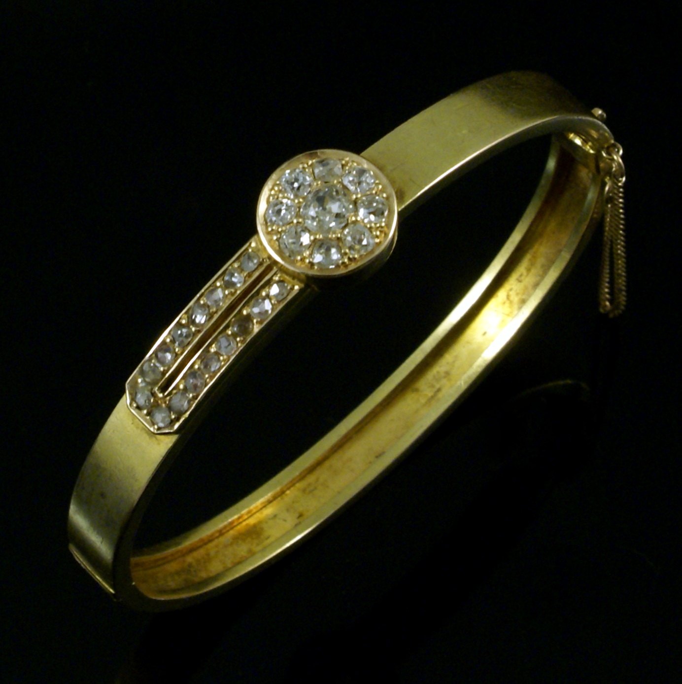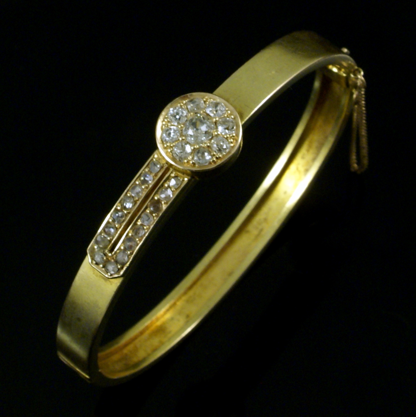 Antik 14k Gold armring med Pavé diamanter. 1.2ct. Omkring år 1910.