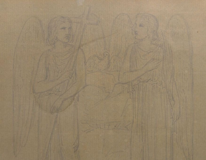 Jerichau, Jens Adolf (1816-1883) Danmark. Engle. Bly på papir. Signeret: JA Jerichau, 1860. 20 x 24,5 cm.