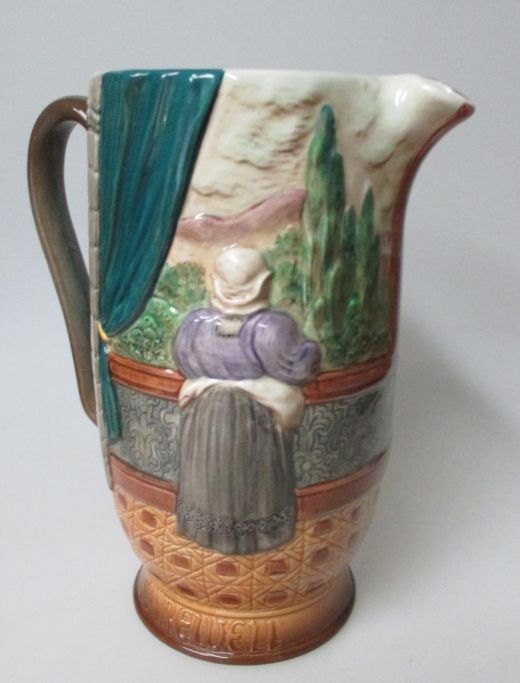 Fajance kande, Beswick, England, 20. årh. Polykrom dekoration med motiver fra Romeo & Juliet. Stemplet. 1214. Højde.: 20,4 cm.