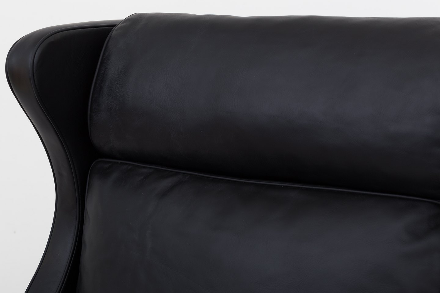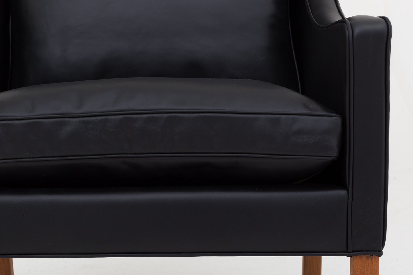 BM 2204 - Nybetrukket i sort Savanne-læder. Vi tilbyder polstring af BM 2204 med stof eller læder efter eget valg. Kontakt os venligst for mere information.