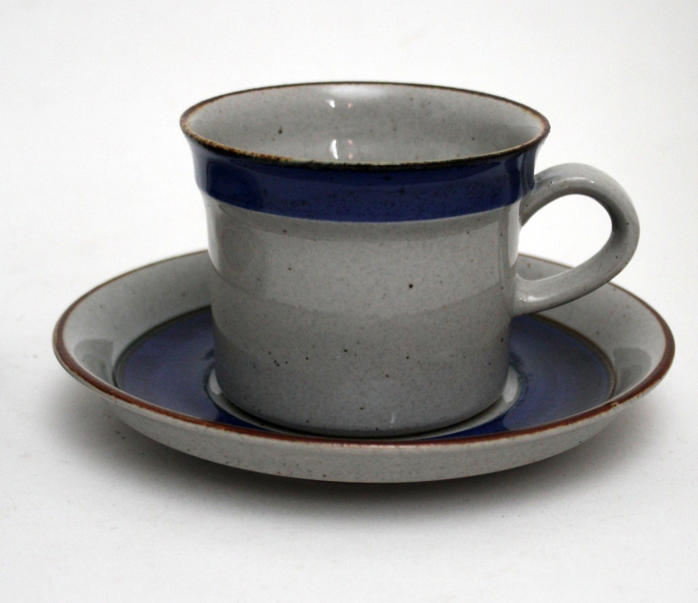 Knabstrup, Christine stentøjsstel grå glasur med blå kant. Designet af den tyske kunstner Christine Konschak, som var tilknyttet Knabstrup i perioden 1967-1970.
