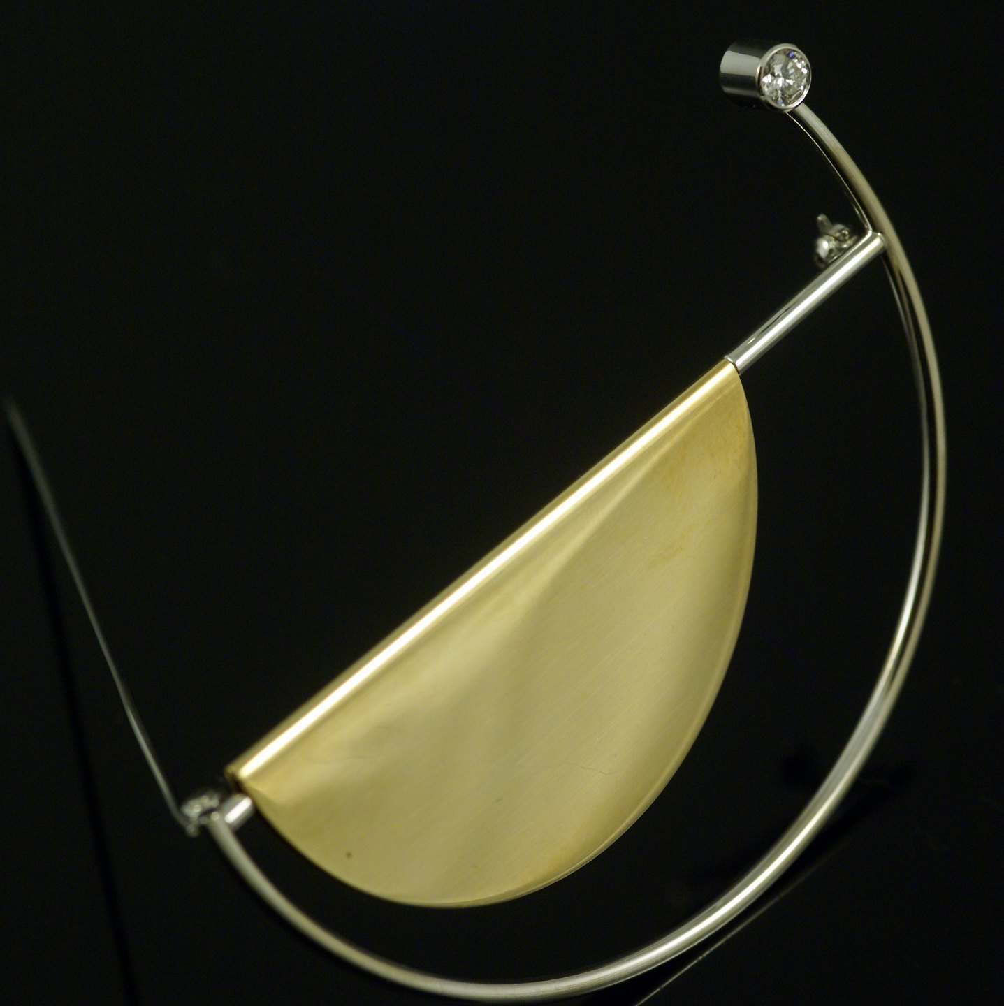 Hans Hansen broche i 14k guld og hvidguld med diamant 0,25ct.