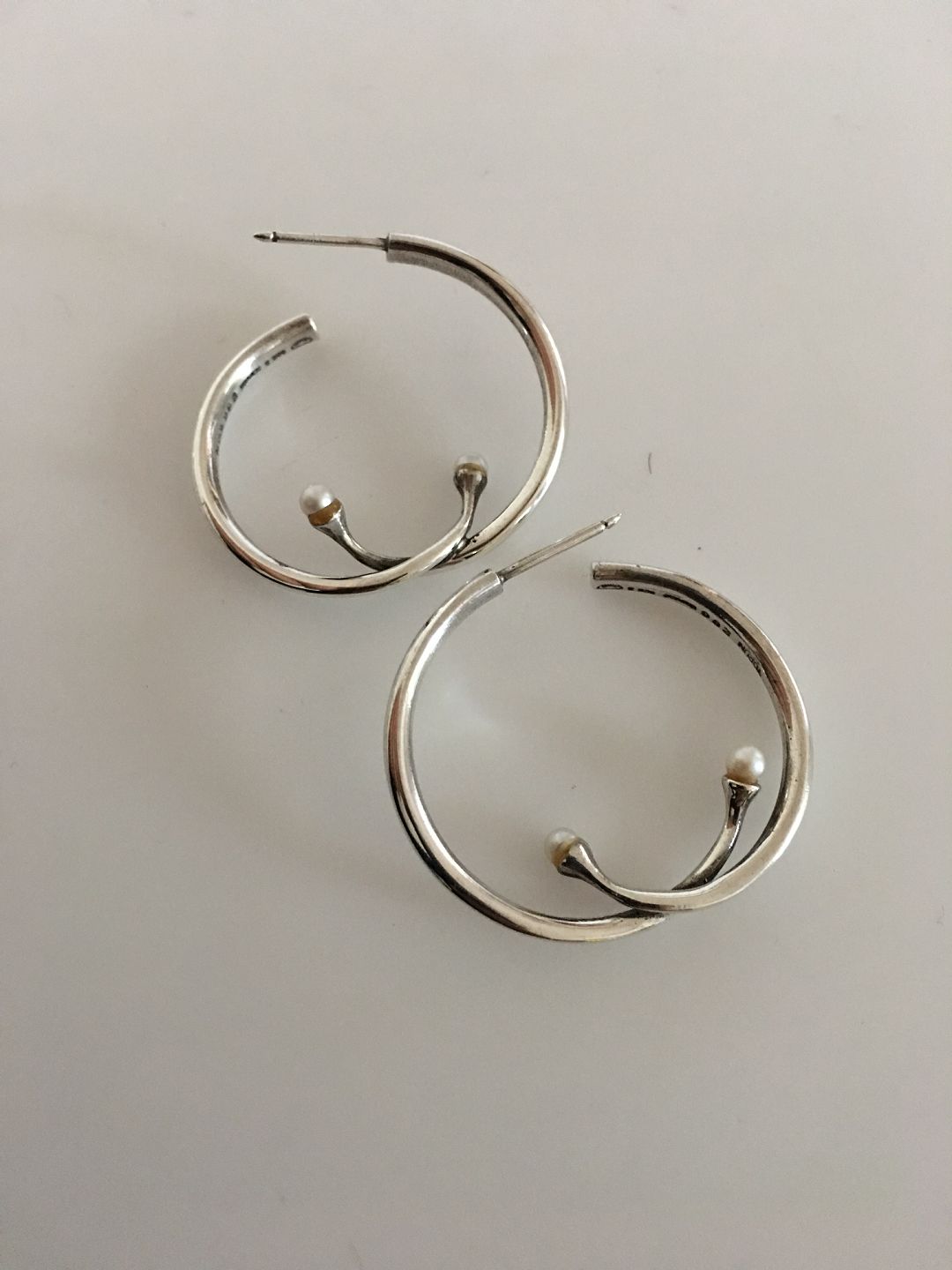 Georg Jensen Sterling Sølv Øreringe No 288 med Perler designet af Vivianna Torun Bülow Hübe. Måler 3,5 cm dia. Vejer tilsammen 10 gram. Design fra 1970'erne. I flot stand.