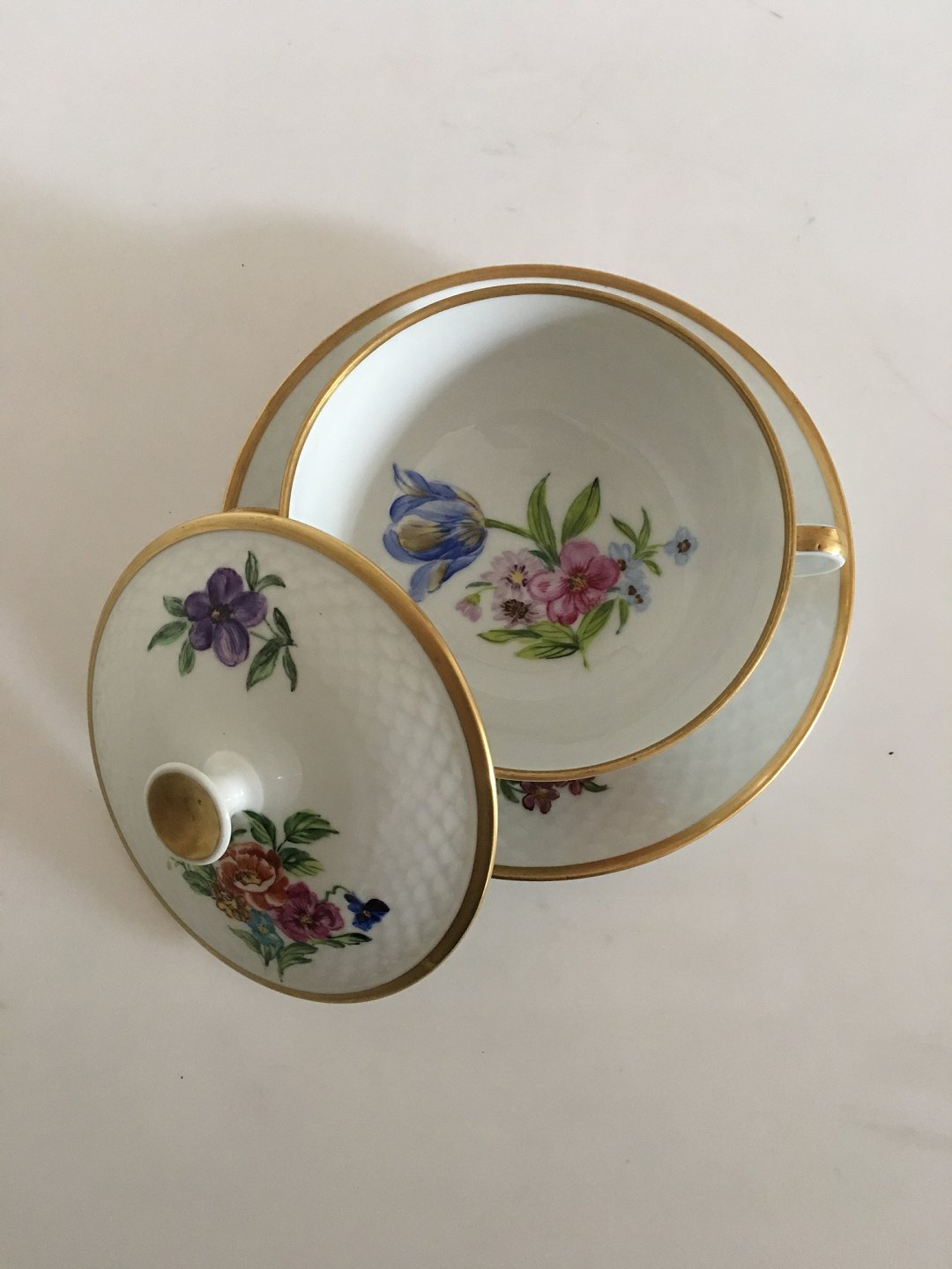Bing & Grøndahl Saksisk Blomst Håndmalet Bouillon Kop og Underkop No 247