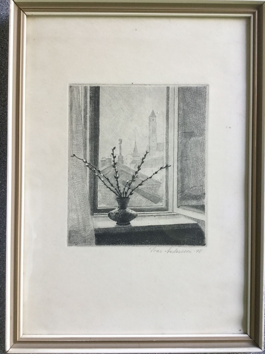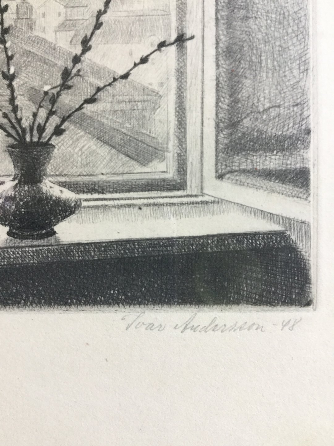 Radering af Ivar Andersson - vindueskarm med vase 1948.