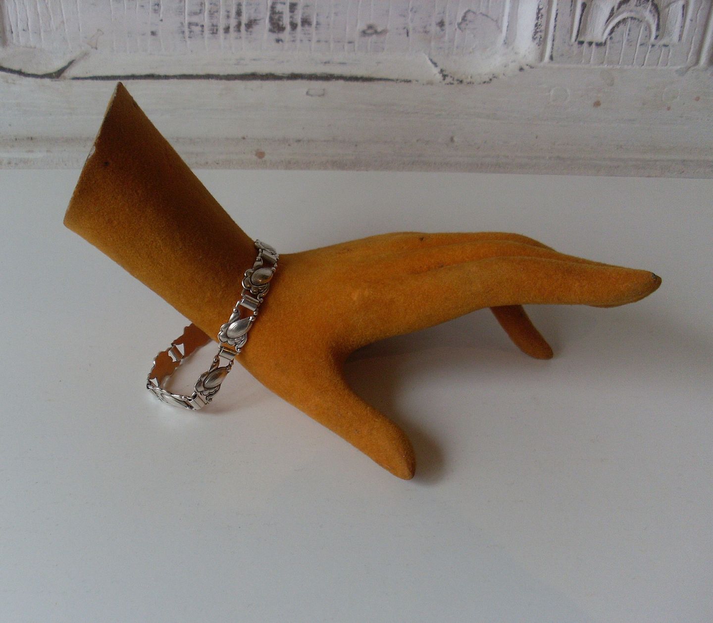 Smukt leddelt sølv armbånd i skønvirke stil.