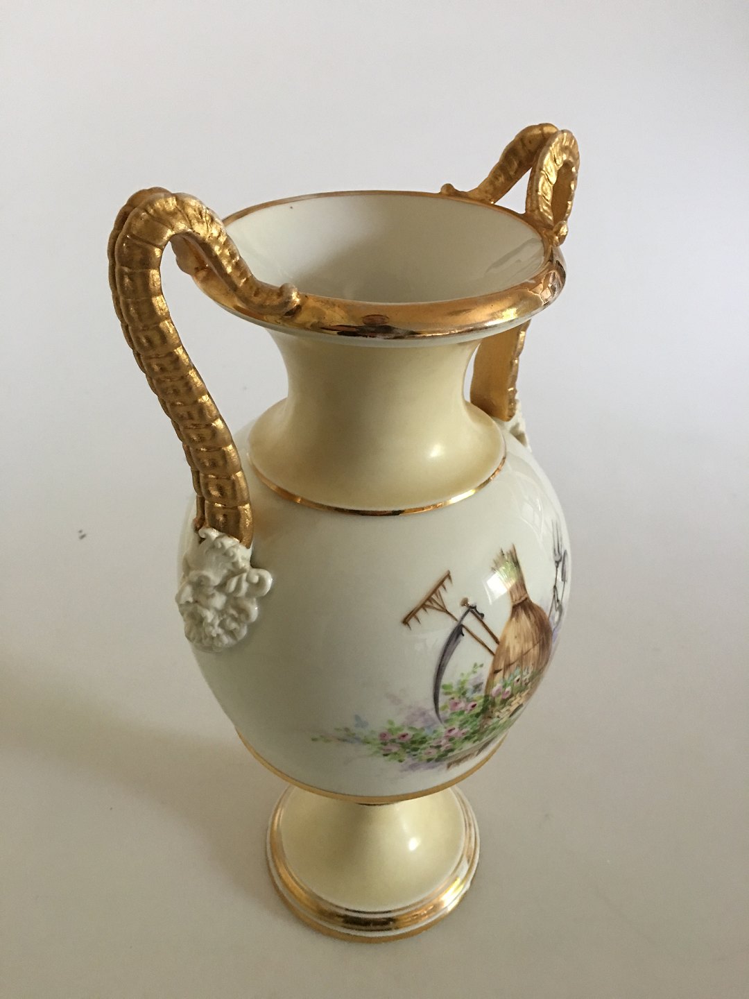 Bing & Grøndahl Tidlig vase med overglasur decoration og romersk/græske Bisque hoveder.