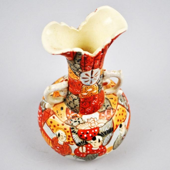 Satsuma vase. Fajance. Japan 19. årh. Polykrom dekoration med figurer. H: 20 cm.
