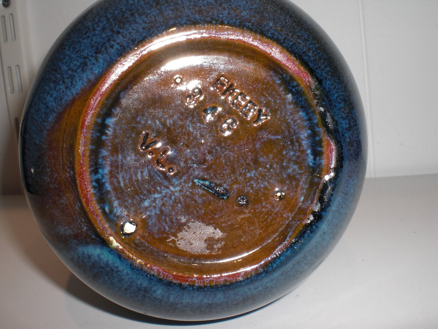 Upsala-Ekeby (1886 - ) keramikvase med smuk brun blå dobbeltglasur - stemplet Ekeby 346 - V.L. design Vicke Lindstrand (var kunsterisk leder 1942 - 1950). I perfekt stand. Højde: 20,5 cm. - bredeste diameter: 11,3 cm.