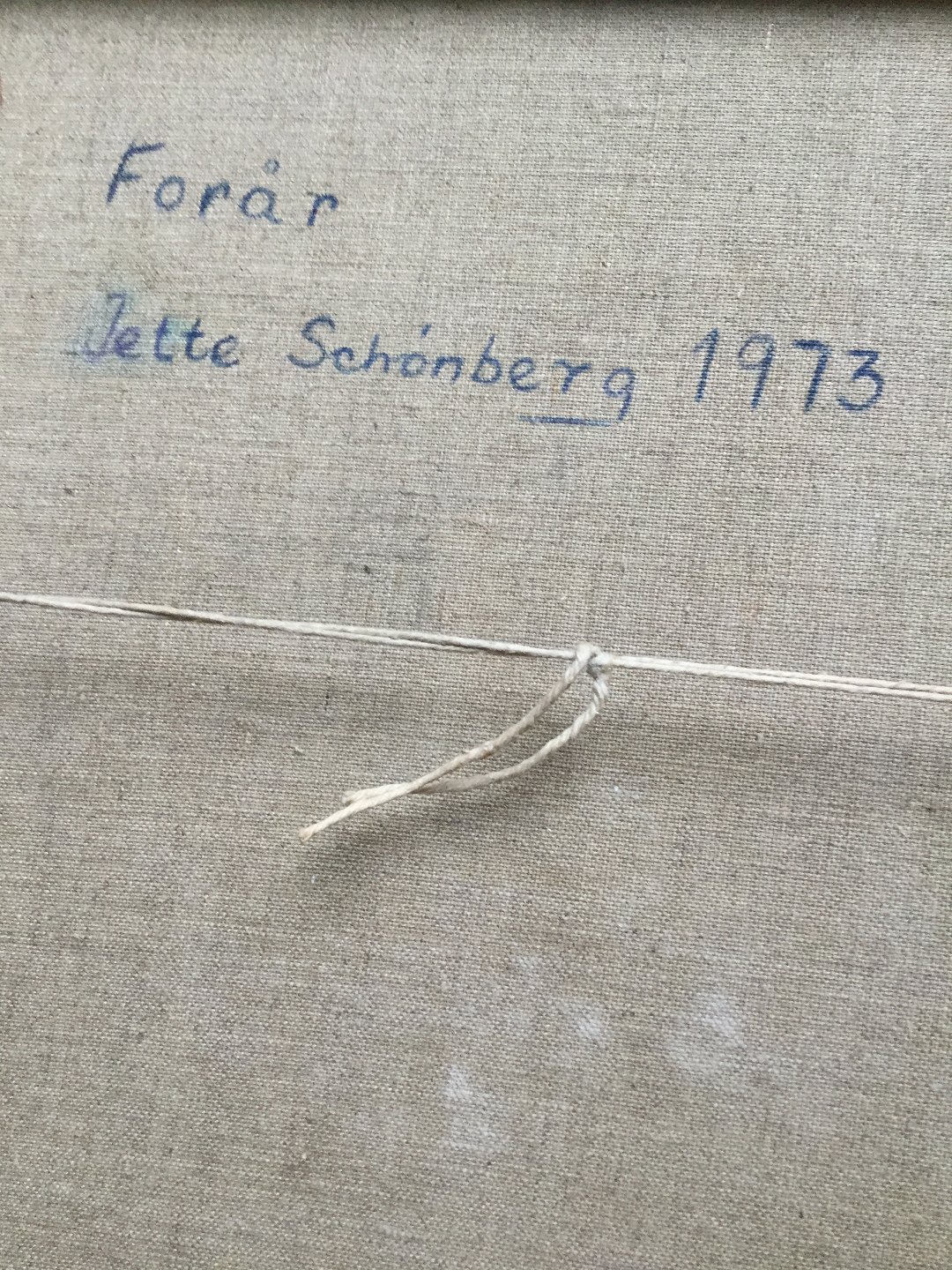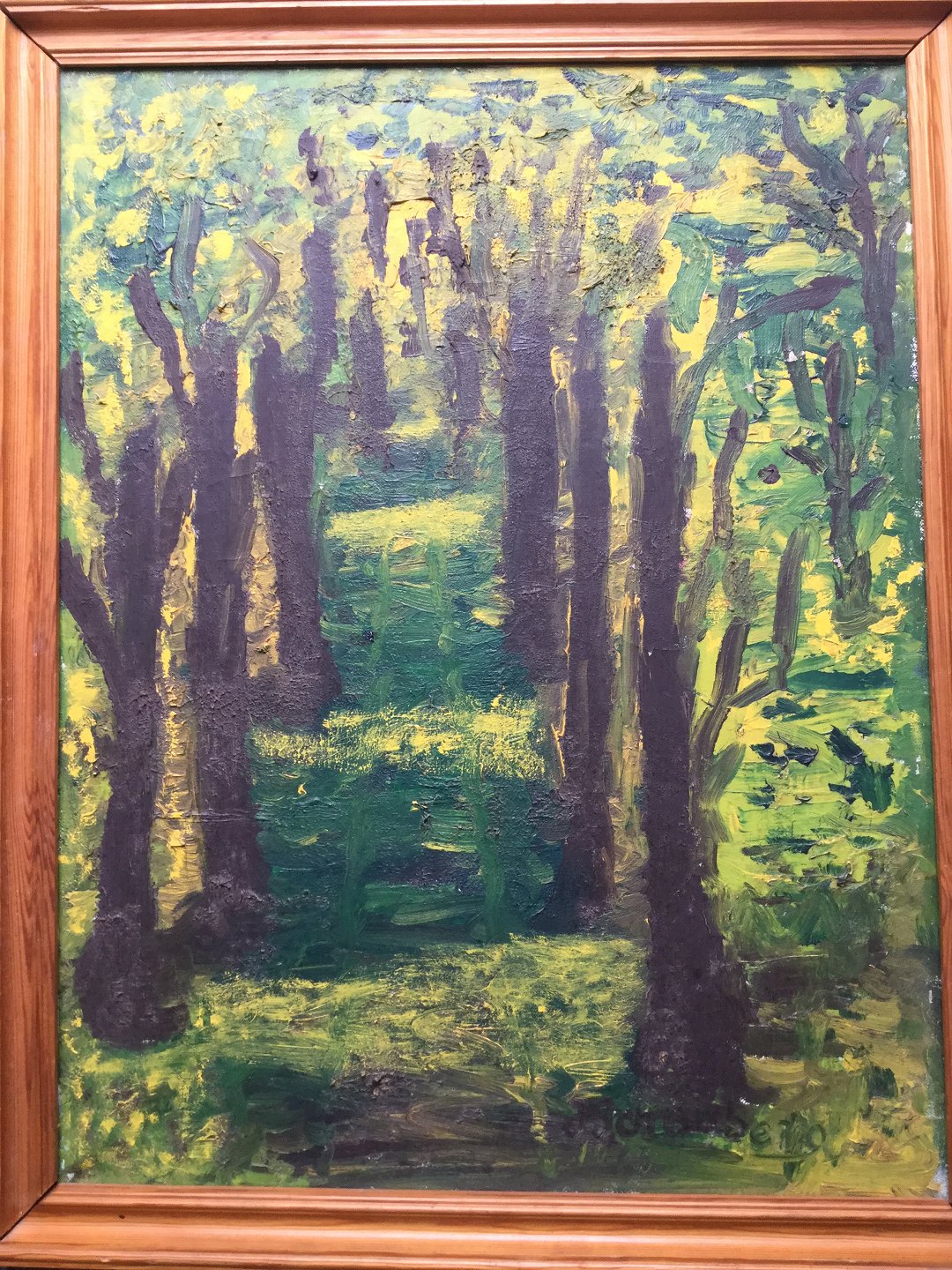 Maleri af Jette Schønberg - Skovparti, Forår 1973.