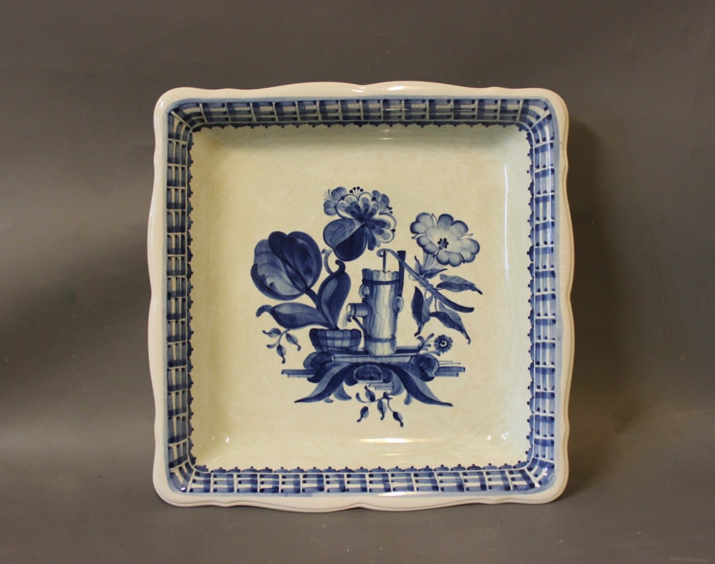 Stort kvadratisk fad af Aluminia, #3087/1198.