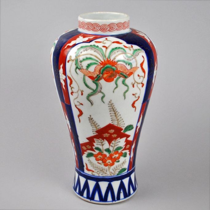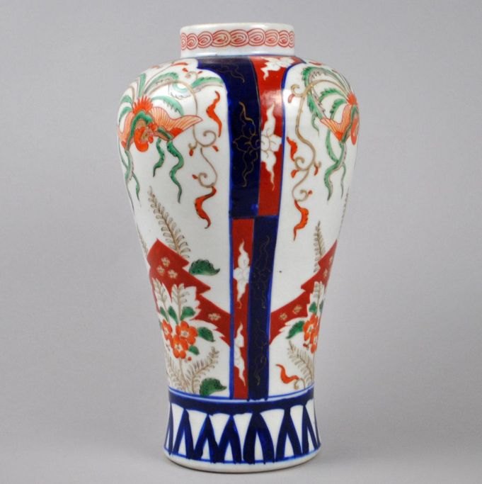Imari vase, Japan. Porcelæn. 19/20. årh. Polykrom dekoration med blomster og Ho fugl. H: 31 cm.