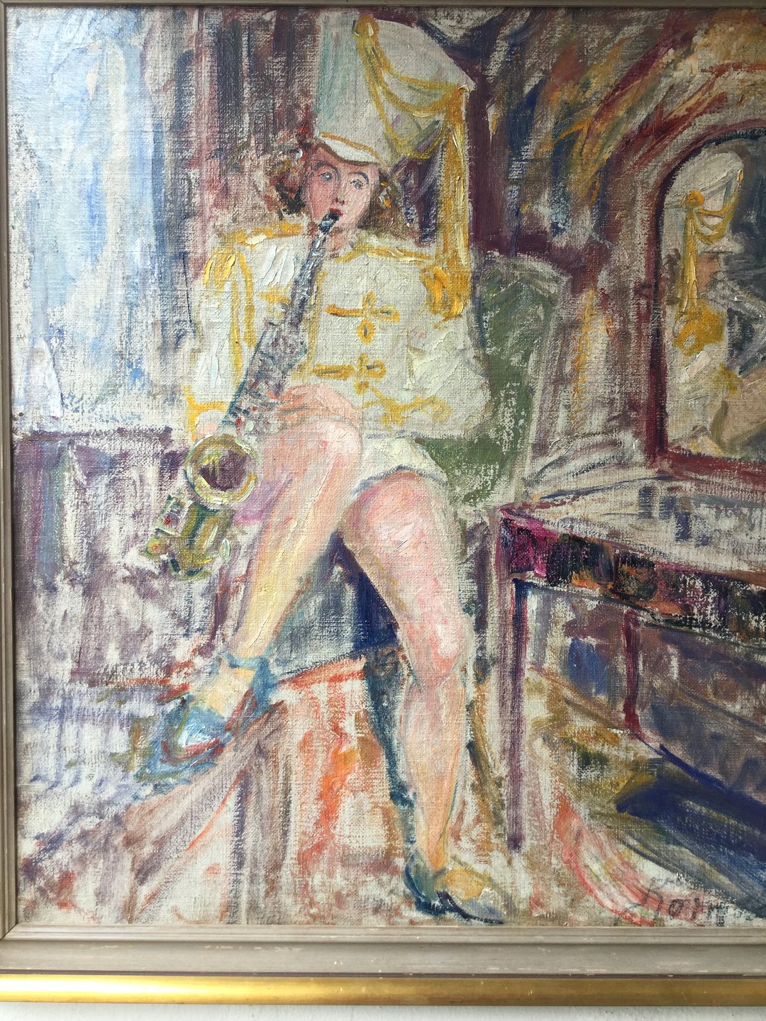Maleri af H.J. Korn - pige i tamburmajorsuniform.