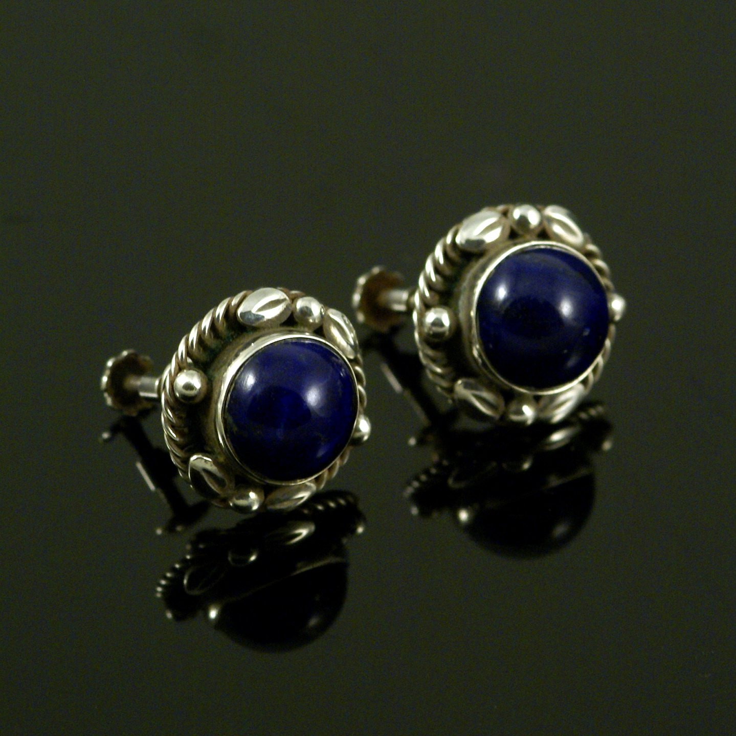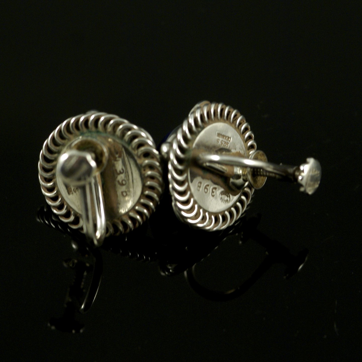 Georg Jensen. Sterling Silver Screw Back Earrings with Lapis Lazuli #39B