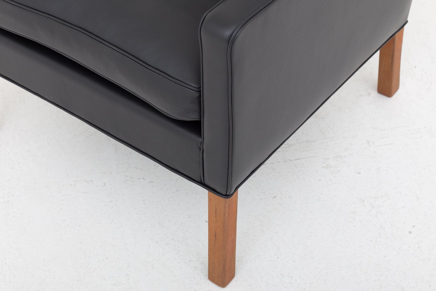 BM 2207 - Nybetrukket lænestol med sort læder og ben i teak