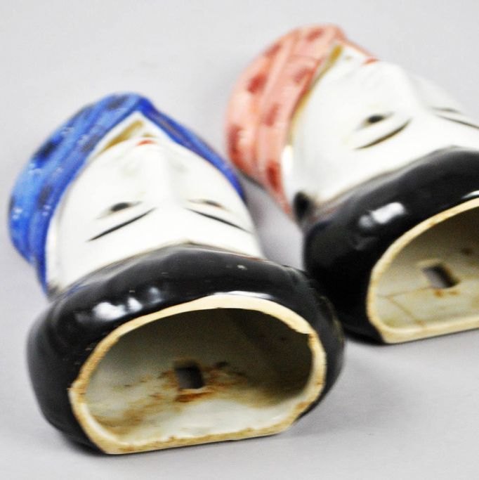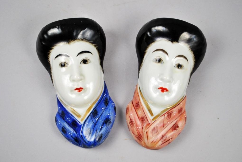 Par antikke hænge japanske vaser. ca. 1900. Bemalet porcelæn. Mand og kvinde i dragter. Højde.: 15 cm.