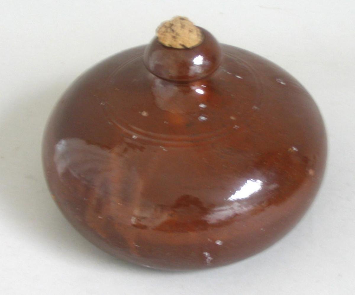 Varmedunk i lertøj, 19. årh. Danmark. Saltglaseret Lertøj. H.: 14 cm. Dia.: 19 cm. Prop af kork. Flot stand.