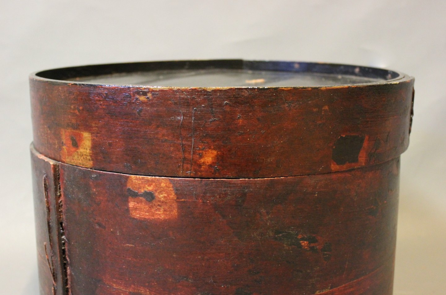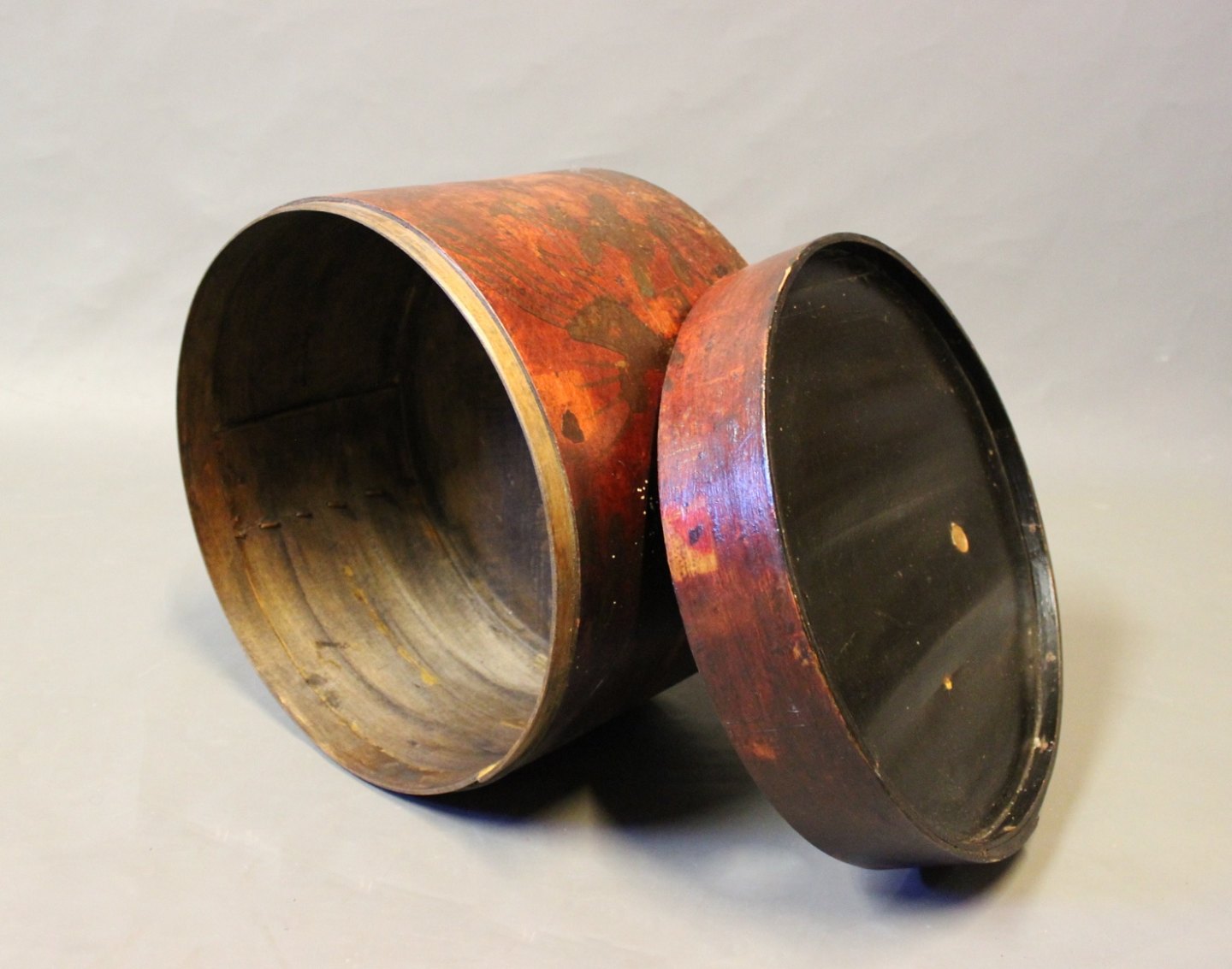 Chinese hat box in wood and with lacquer stamp from around the 1930s.