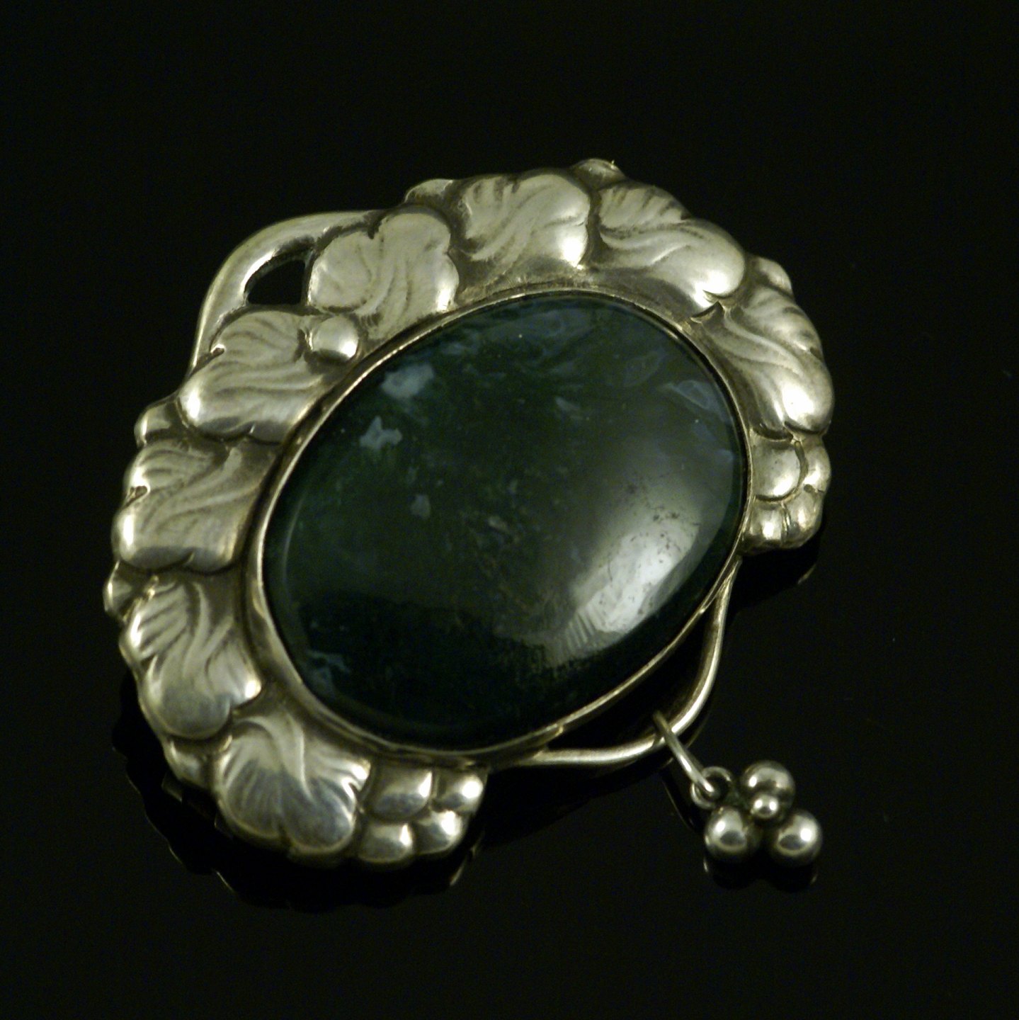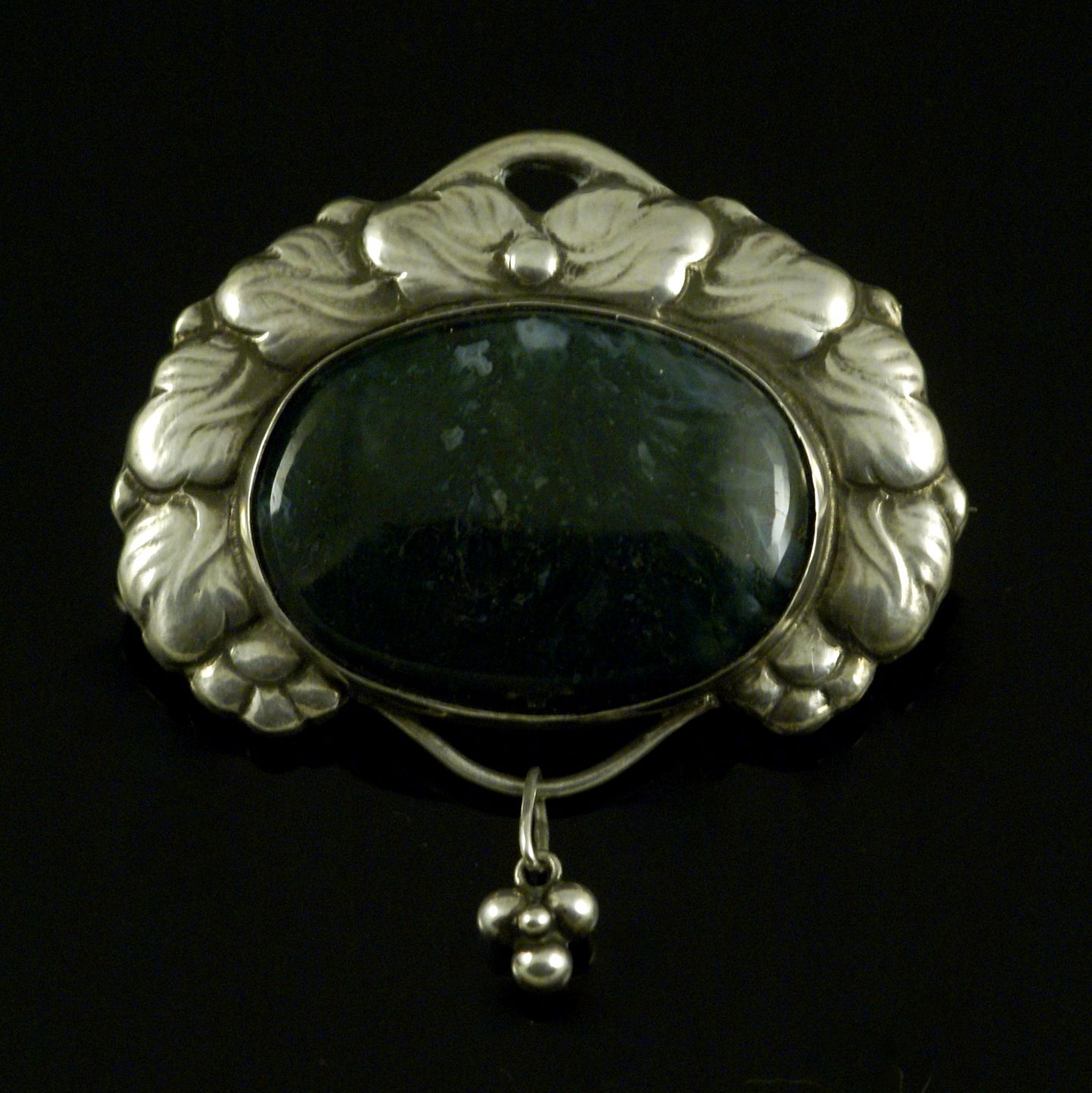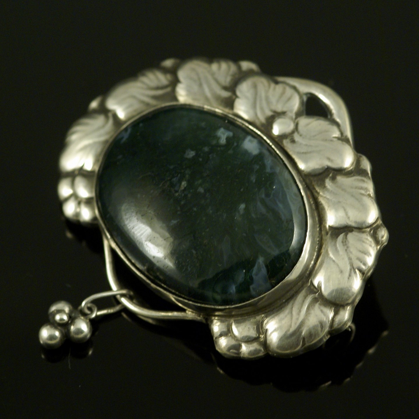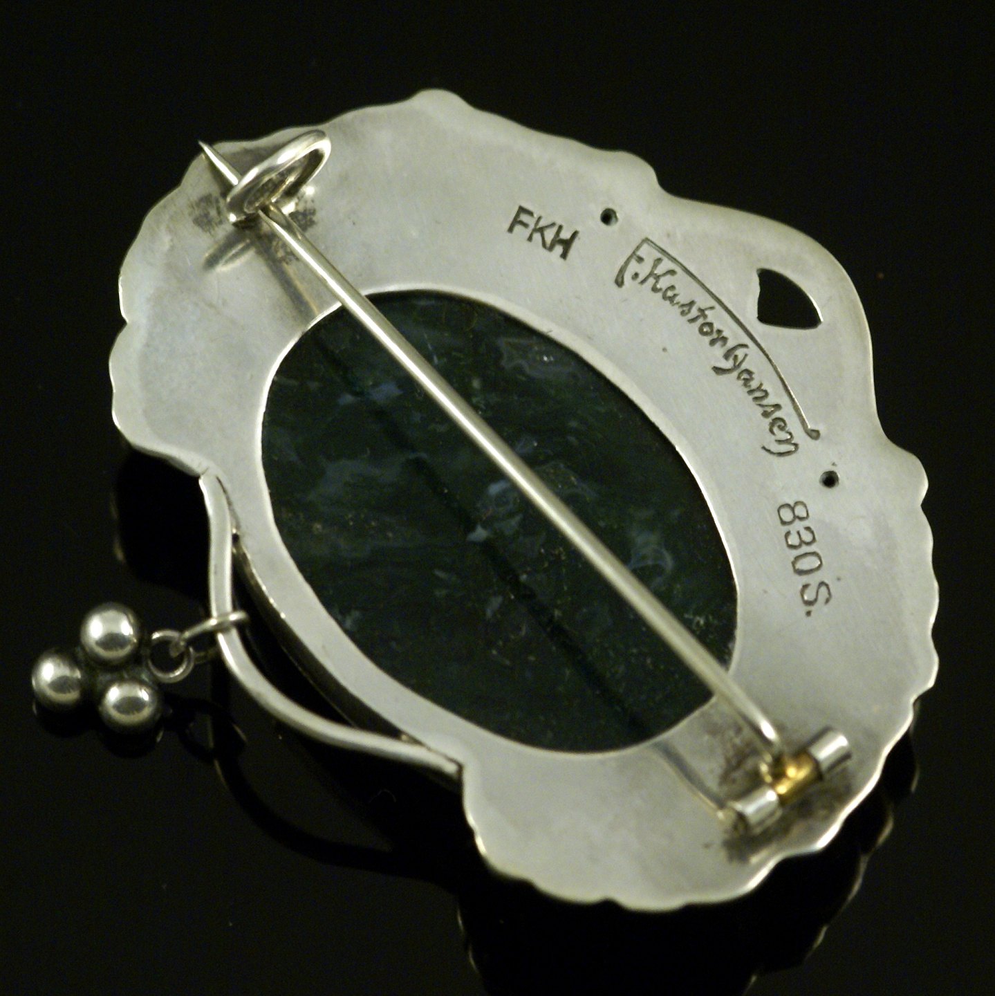 F. Kastor Hansen. Skønvirke Broche i Sølv med mosagat.