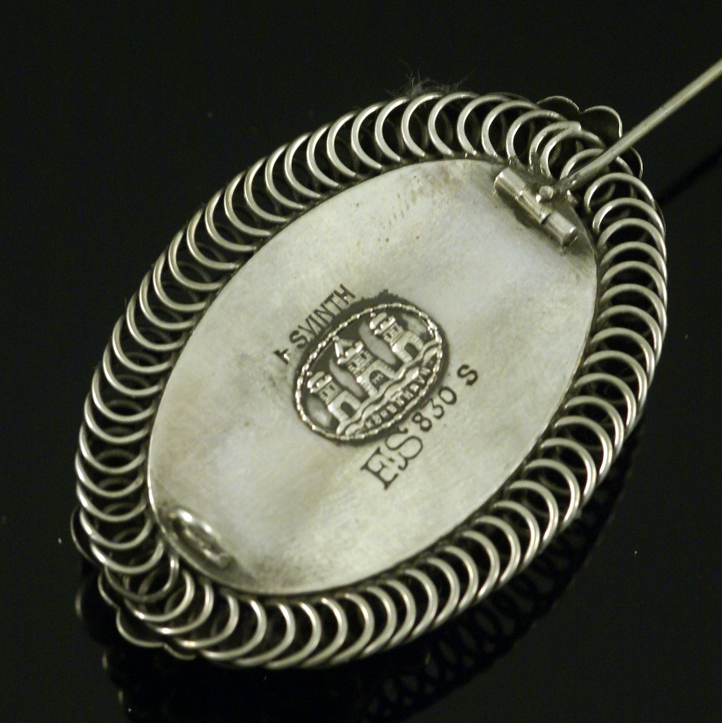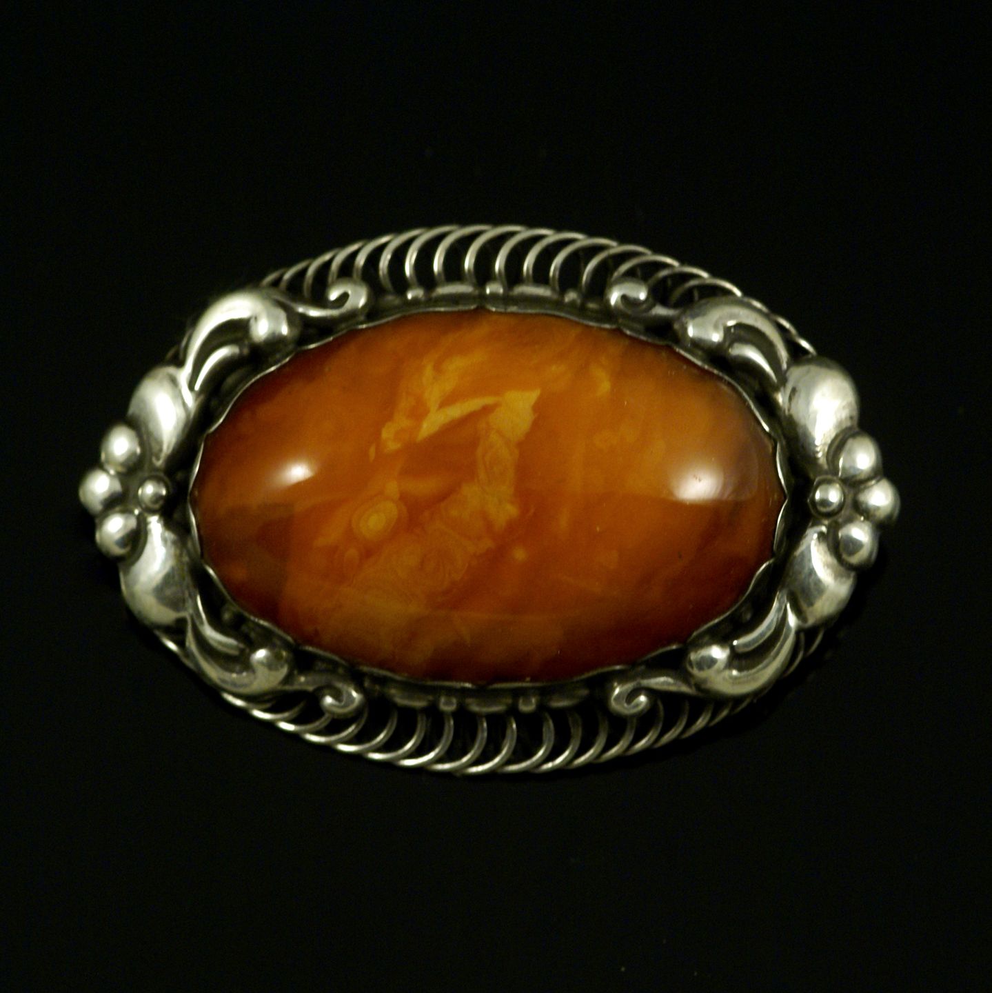 Ferdinand Svinth. Skønvirke Broche i Sølv med rav.