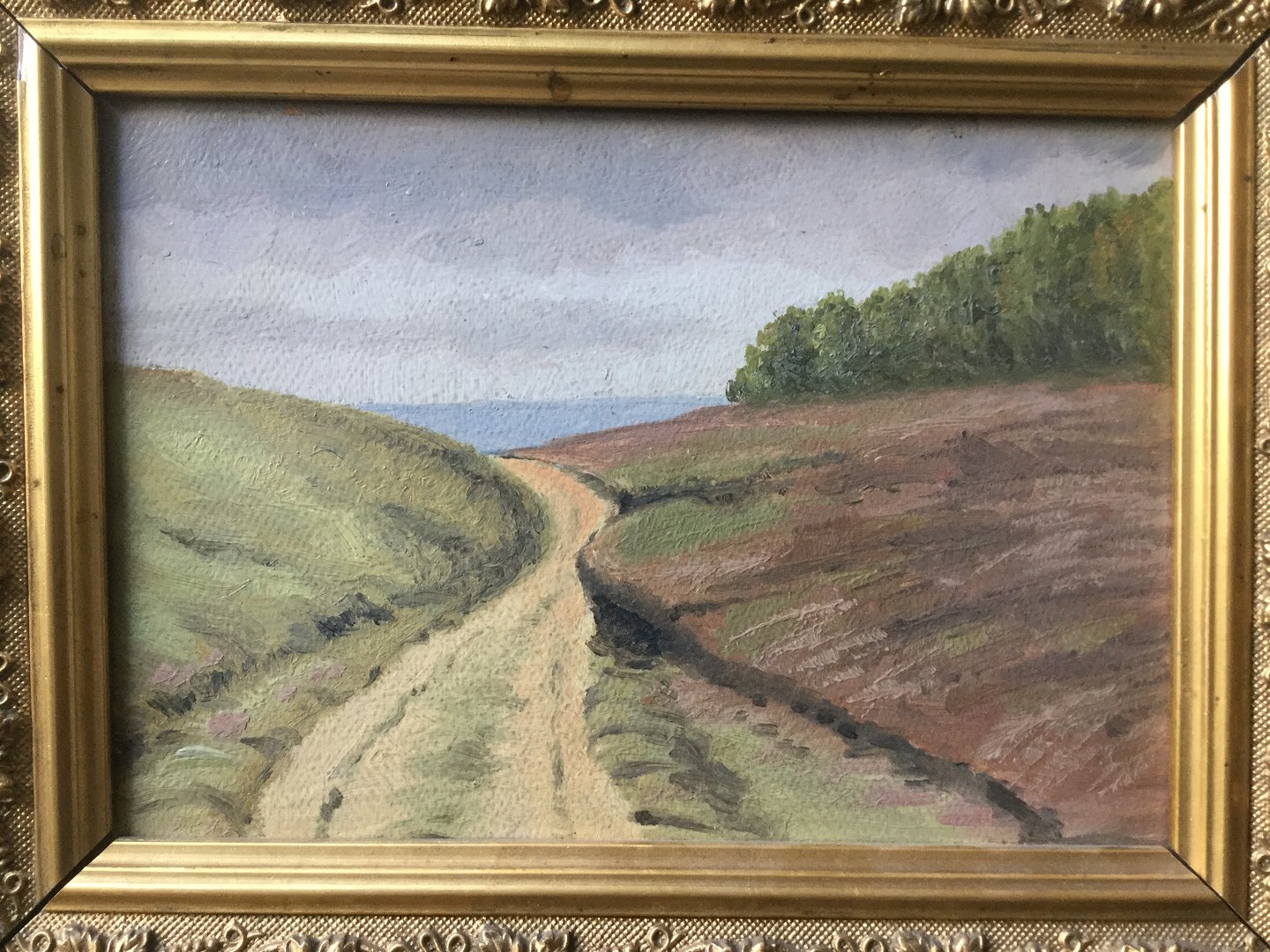 Antikt maleri i smuk ramme - Landskab.