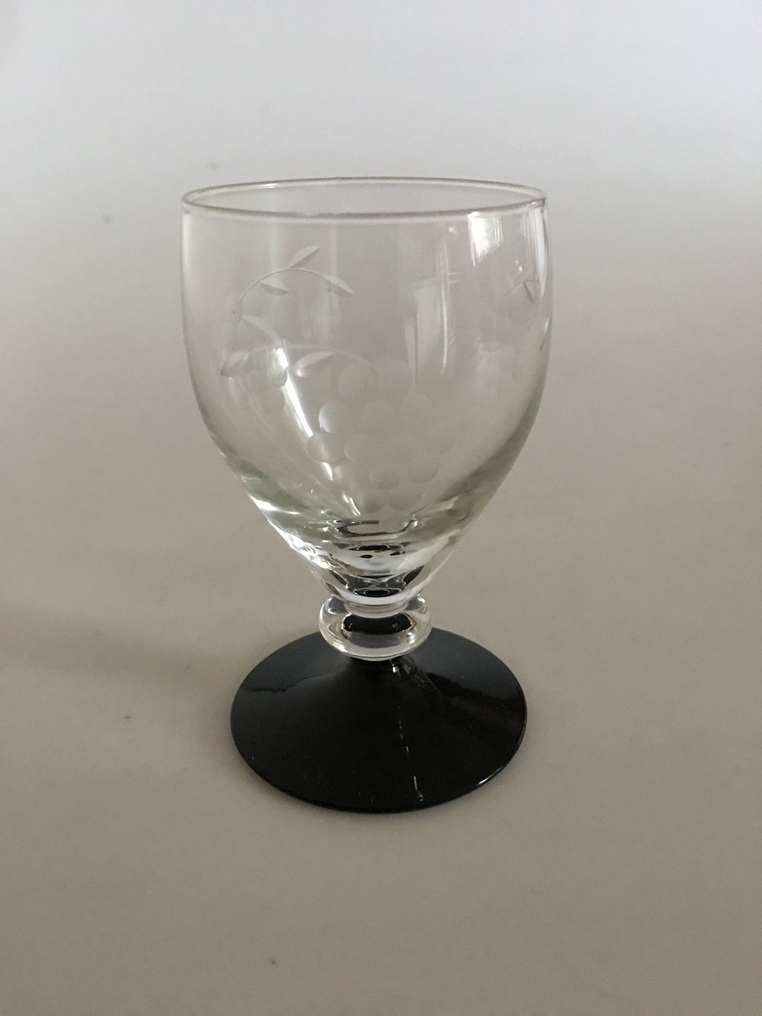 "Jane" Sortfods Hvidvinsglas med drueslibning fra Holmegaard. 10 cm H. Produceret første gang i 1942.