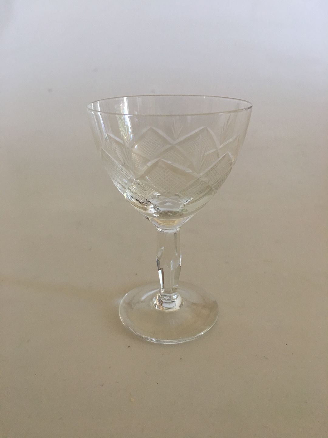 "Wien Antik" Snaps / Hedvinsglas fra Lyngby Glas. Måler 8 x 5 cm (3 5/32 x 1 31/32 in). Krydsslebet kumme med facetslebet stilk. Fra omkring 1956.