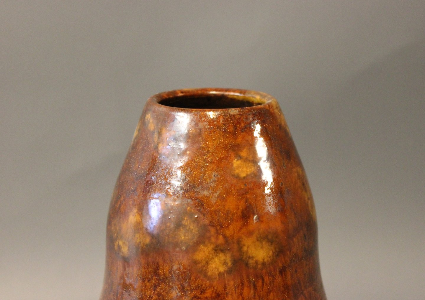 Keramik vase i brune farver og med glimmer i glasuren af ukendt kunster.