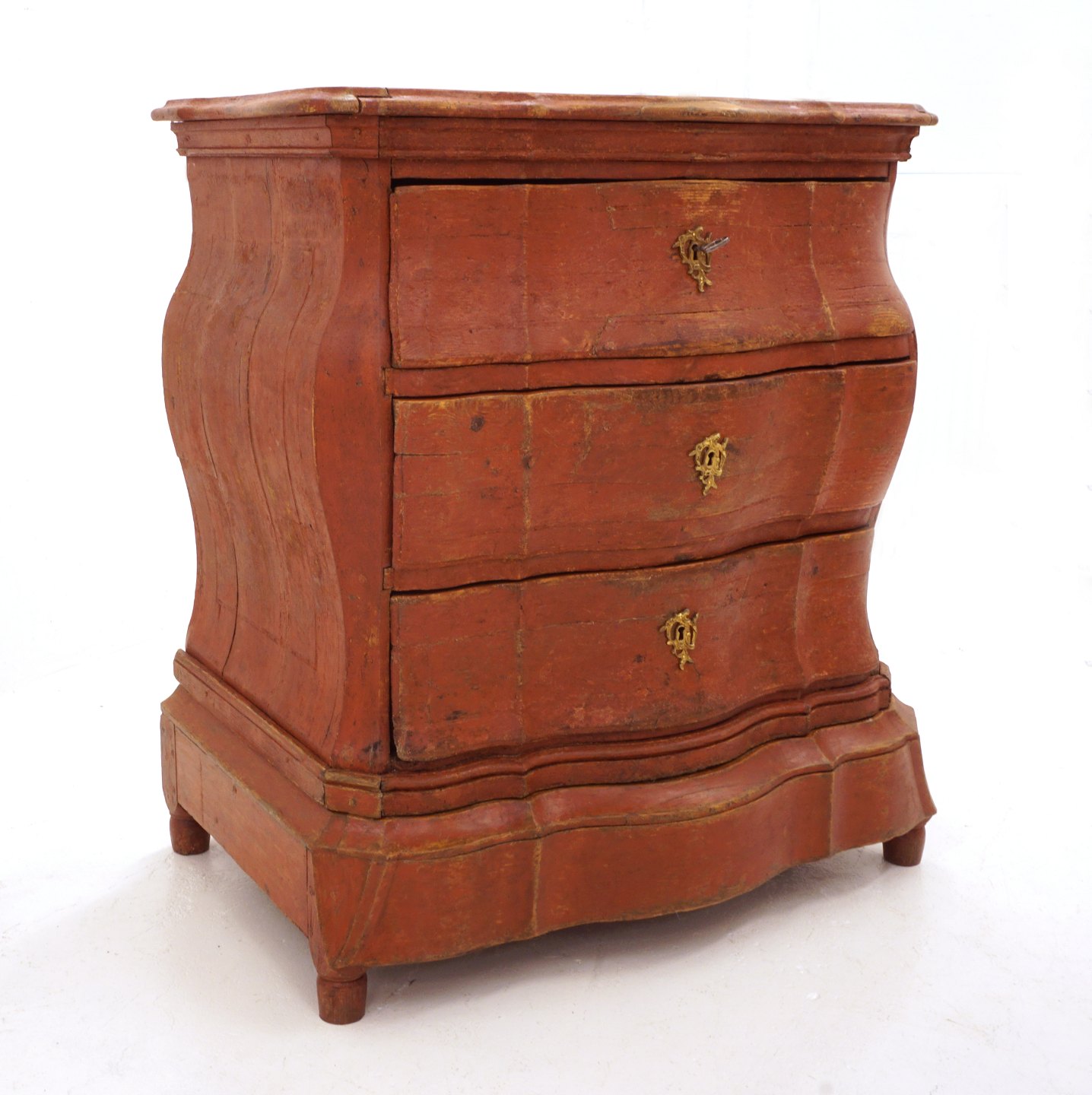 Rococo chest of drawers in original colors. Denmark circa 1760. H: 96cm. Top: 55x84cm