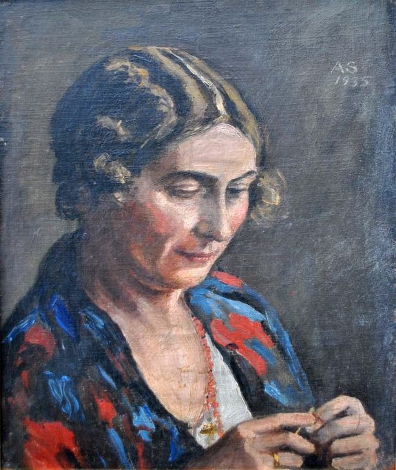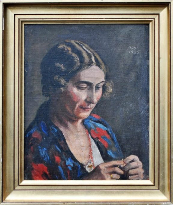 Søeborg, Axel (1872 - 1939) Dänemark: Portrait. Öl auf Leinwand / Holz. Gezeichnet: Monogramm AS 1935 31 x 25 cm. Eingerahmt.