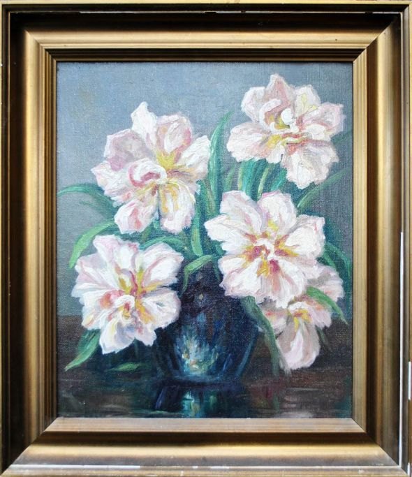 Kliim, Lars (1890 - 1942) Danmark: Blomsteropstilling. Olie på lærred. Signeret: Lars Kliim. 37 x 32 cm.