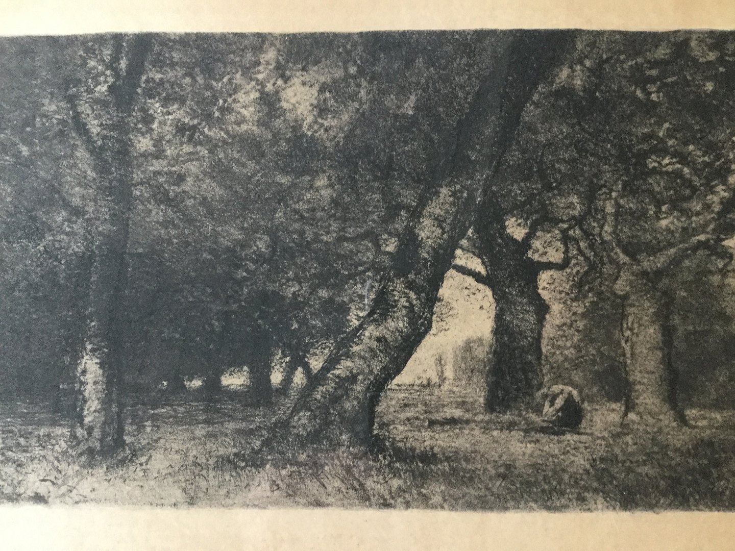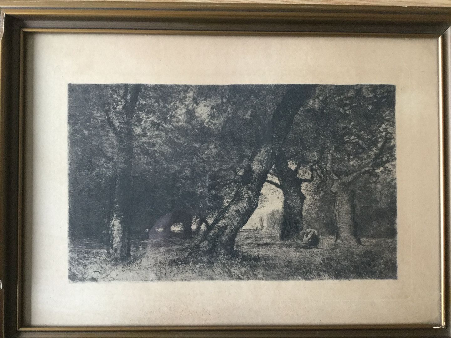 Radering af Otto Gampert - pige plukker blomster i skoven.