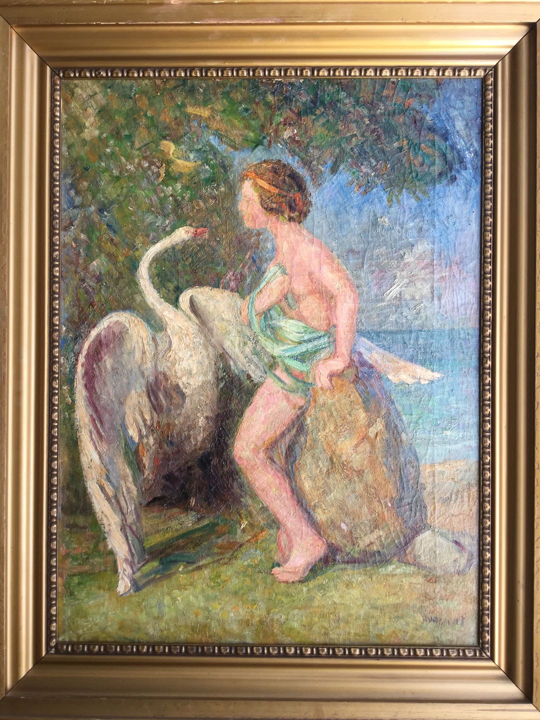Text available in Danish: Maleri af Hans V. Hempel - Leda og Svanen 1917-19.