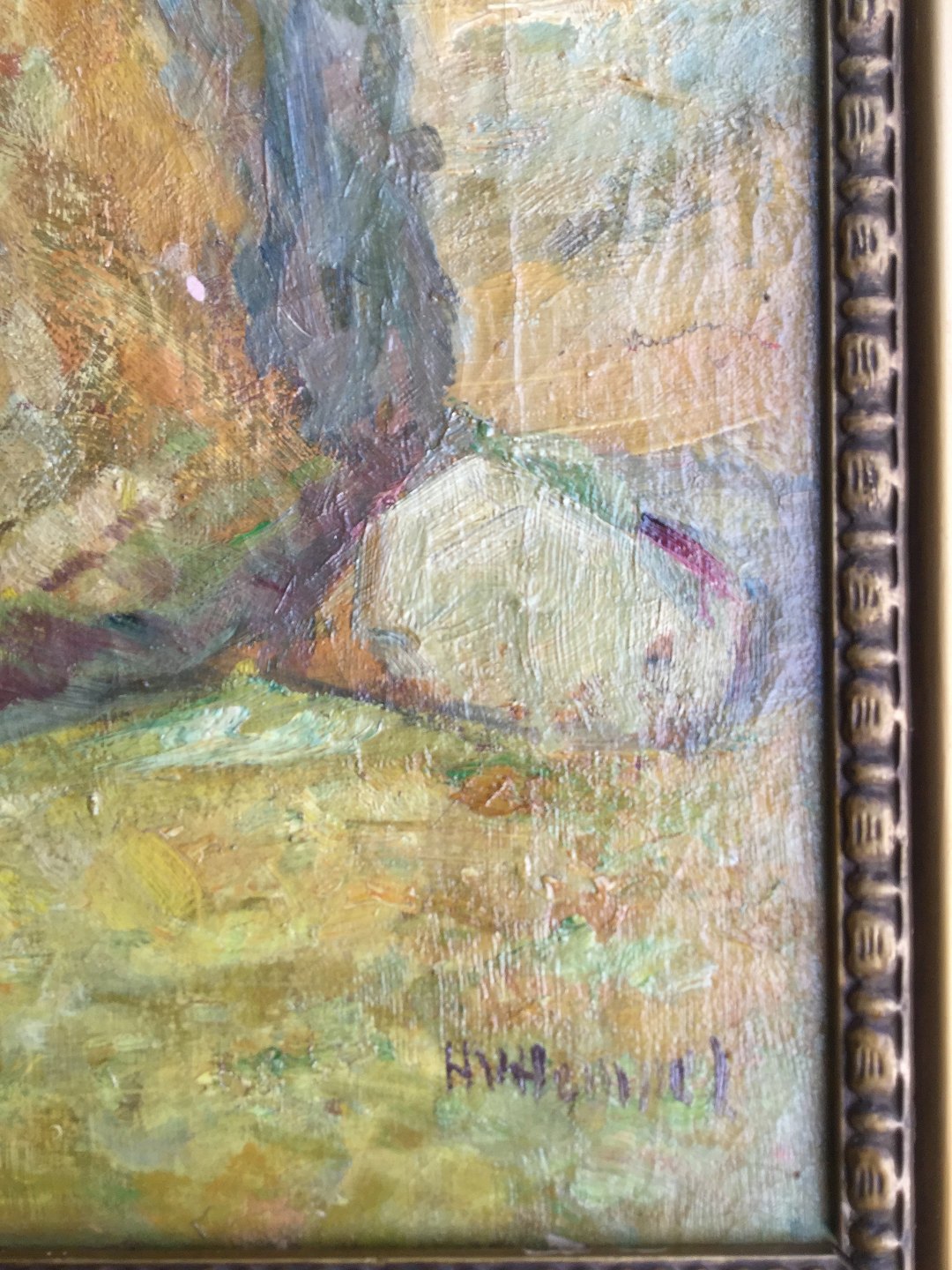 Bagpå lærred betegnet "Leda 17-19" og "Tilhører Ghita Hempel"