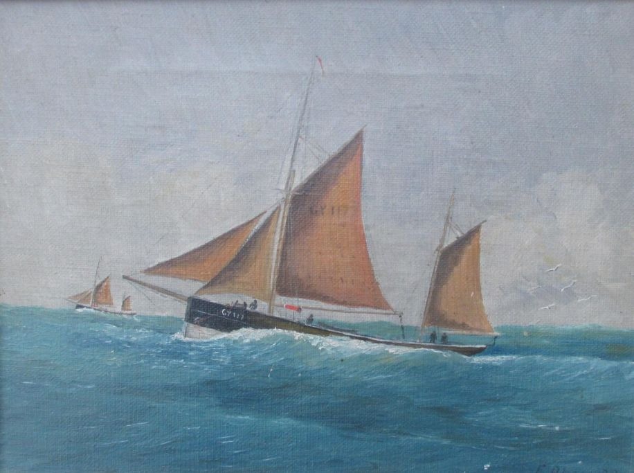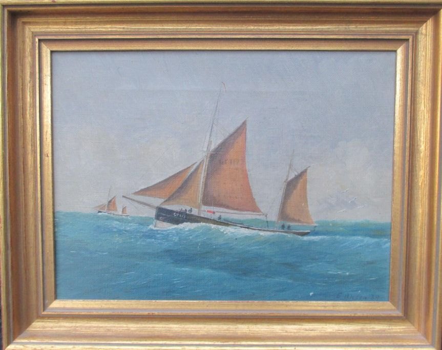 Olesen, E (20. årh.) Danmark.: En fiskerbåd. Olie på lærred. Signeret: E. Olesen 39. 23 x 31 cm.
