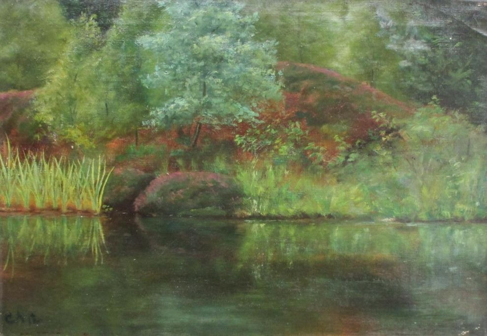 Andersen, Cilius Johannes Konrad (1865 - 1915) Danmark:                        : Sø parti. Olie på lærred. Signeret.: CA 1918. 30 x 42 cm.  Indrammet.