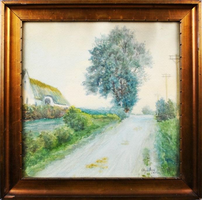 Aae, Olga (1877 - 1965) Denmark: A street. Watercolor. Signed: Olga Aae 1915.