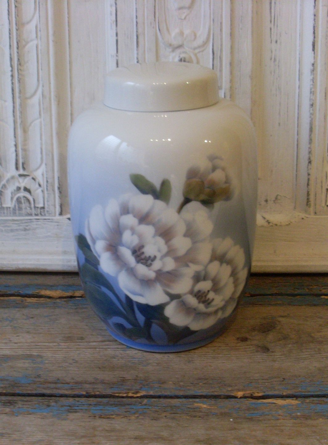 Royal Copenhagen lågvase dekoreret med pæoner no. 92/888