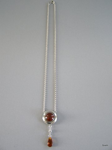 Halssmykke Sølv, Vedhæng med indfattet Rav og Ravperle