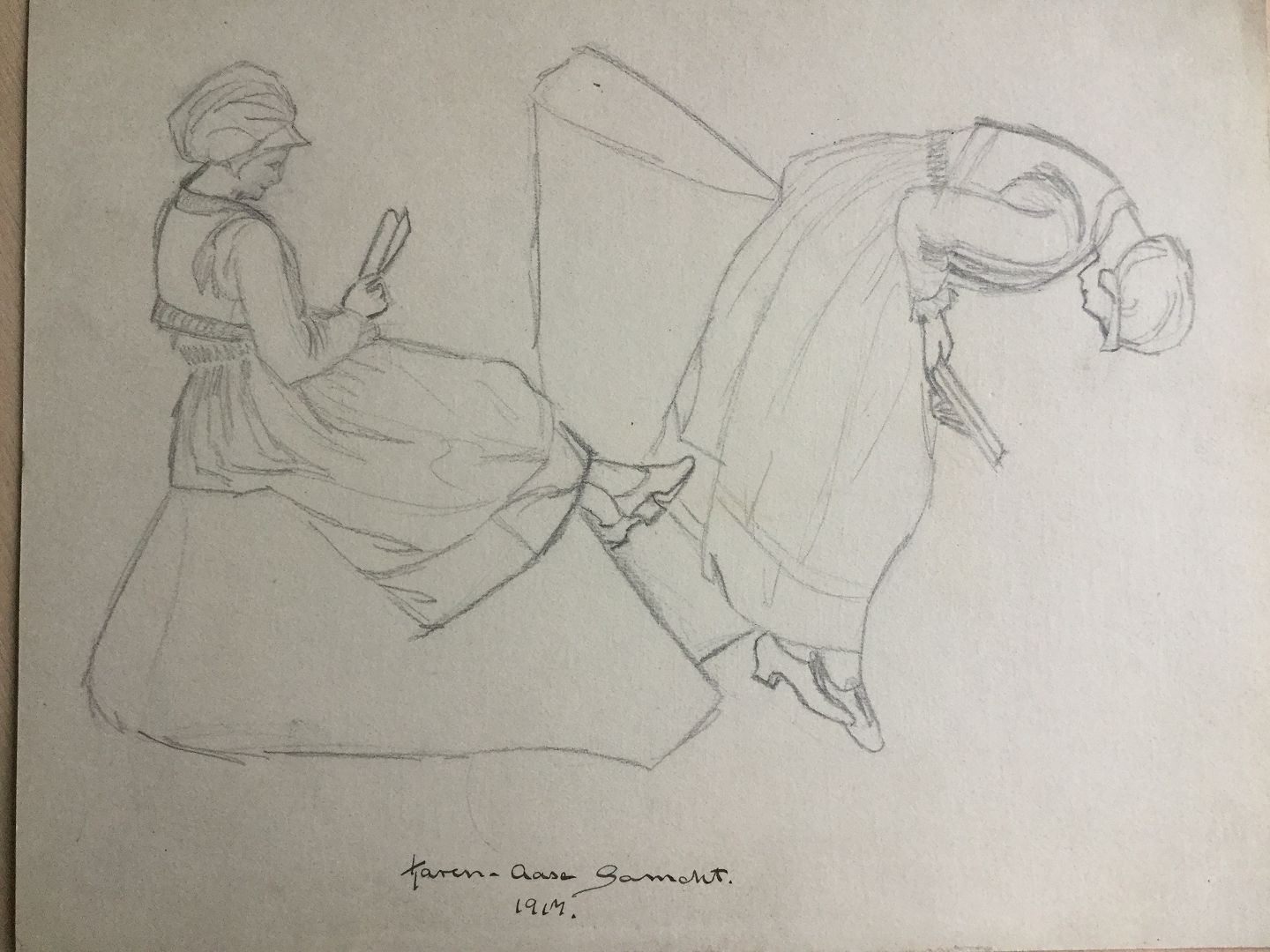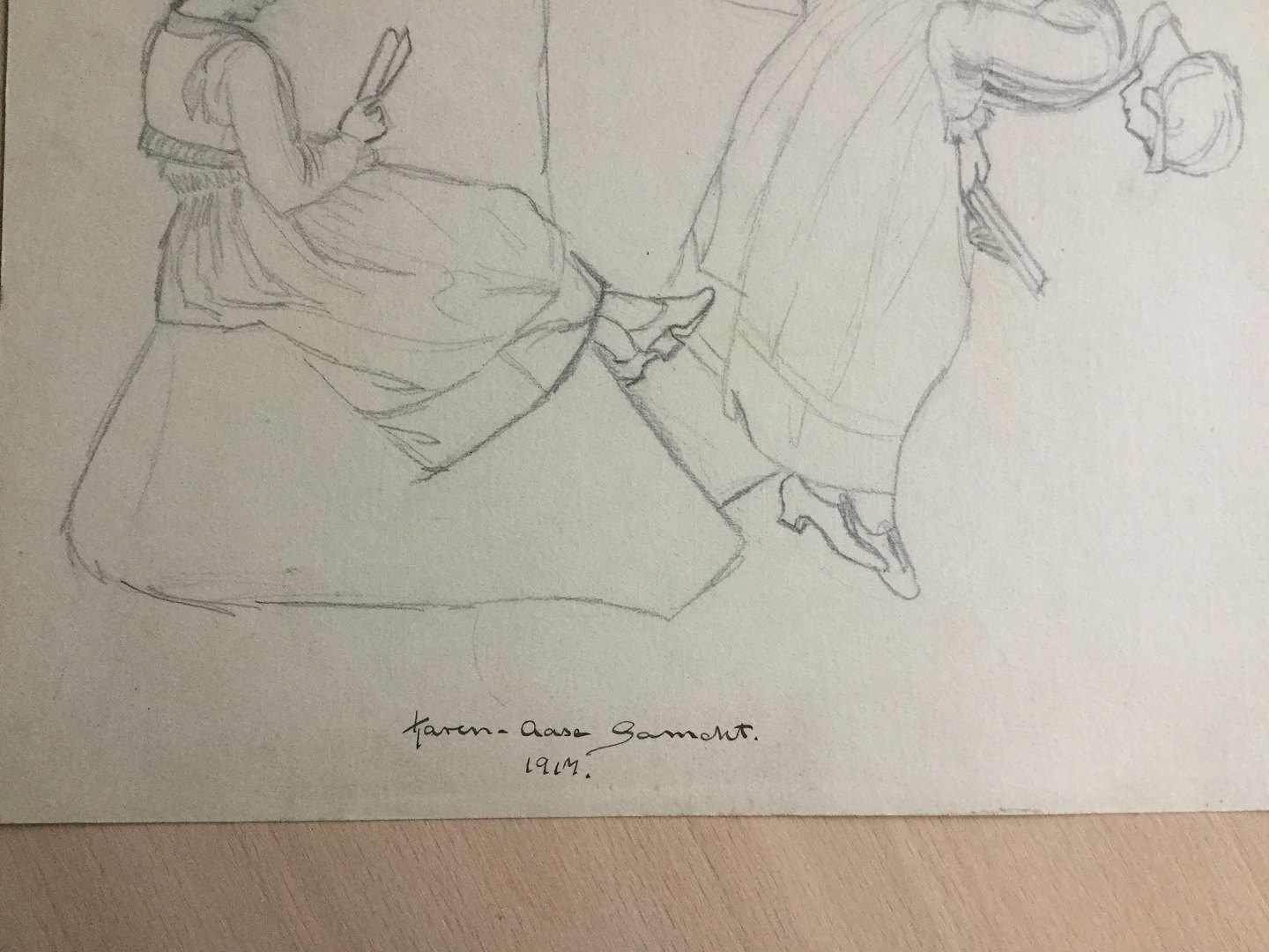 Tegning af Karen-Aase Cavling - skitser 1917.