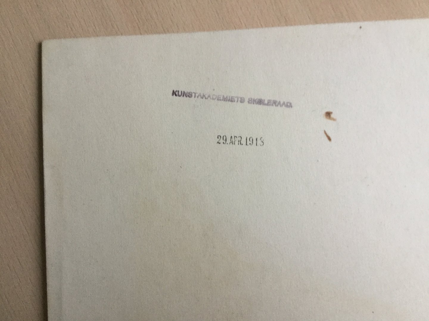 Bagpå stempel - Kunstakademiets Skoleråd 29/4 1918.