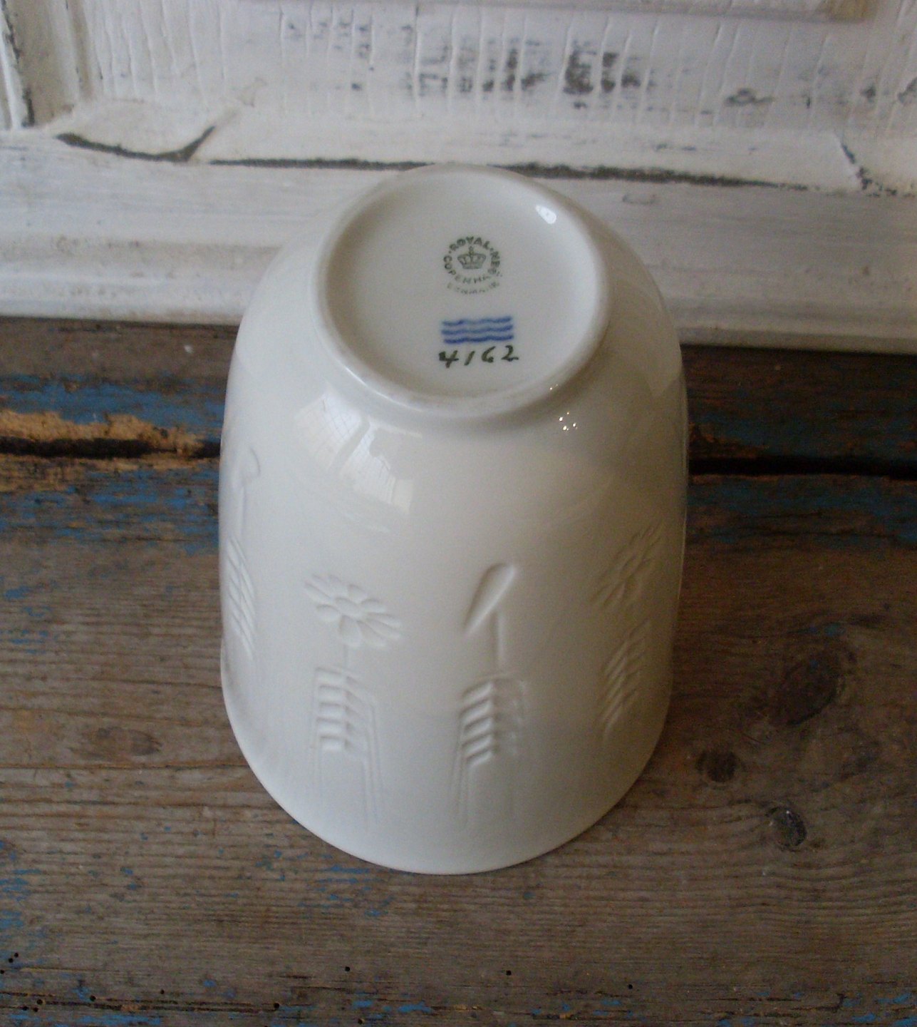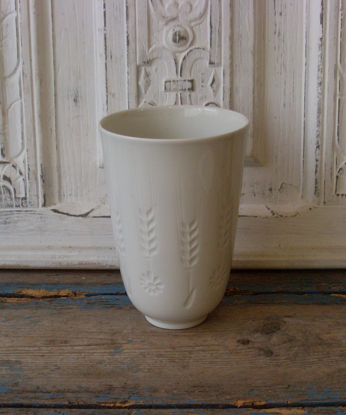 Royal Copenhagen Blanc de Chine vase med blomster og kornaks i relief
