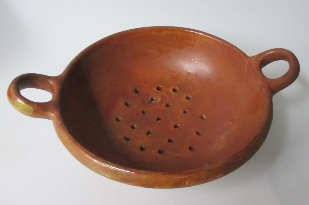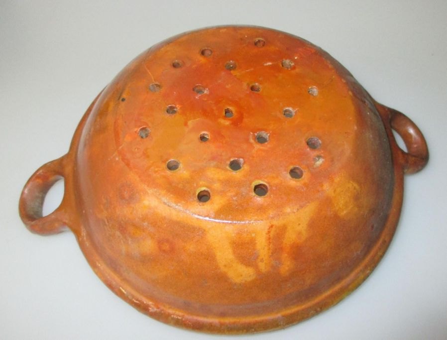 Ancient Danish colander, 19th century. Brown glazed. Slide: 18 cm. Length: 23 cm.