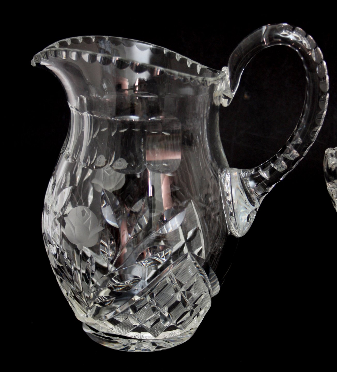 Krystal kande med fine slibninger og matslebet blomst. Højde 21 cm. Pris: SOLGT