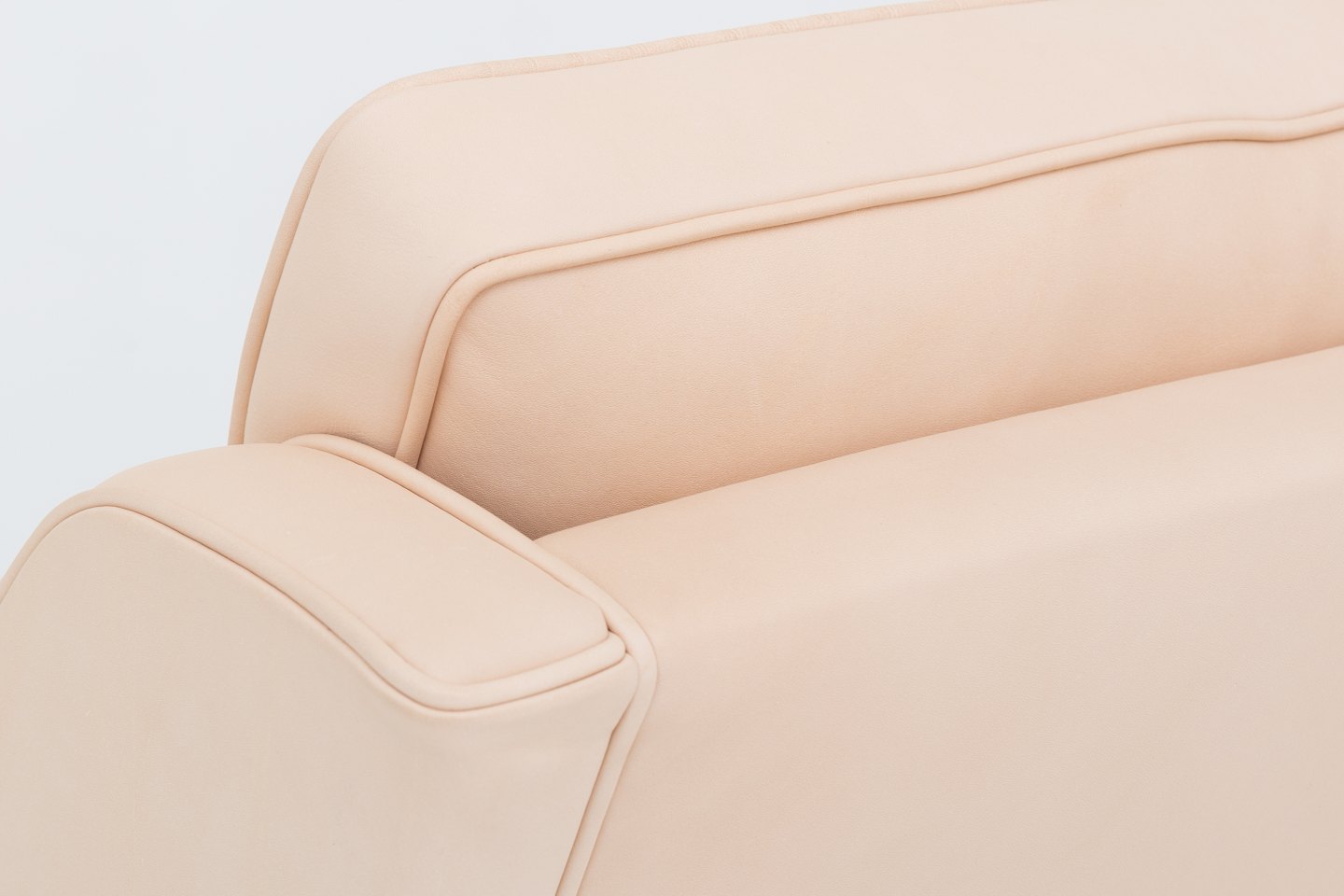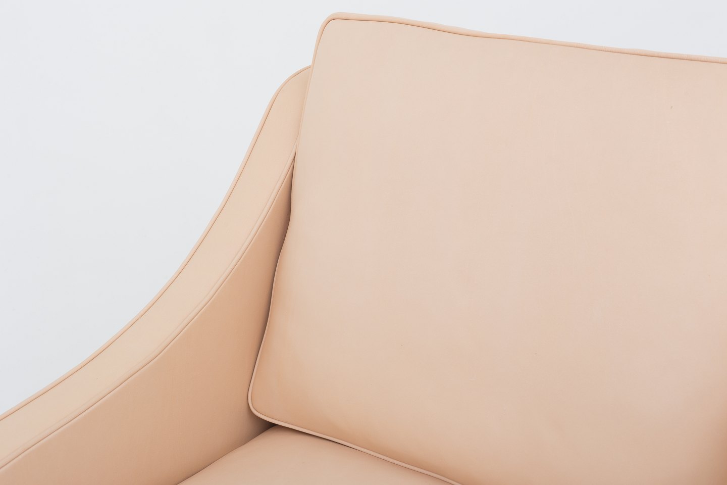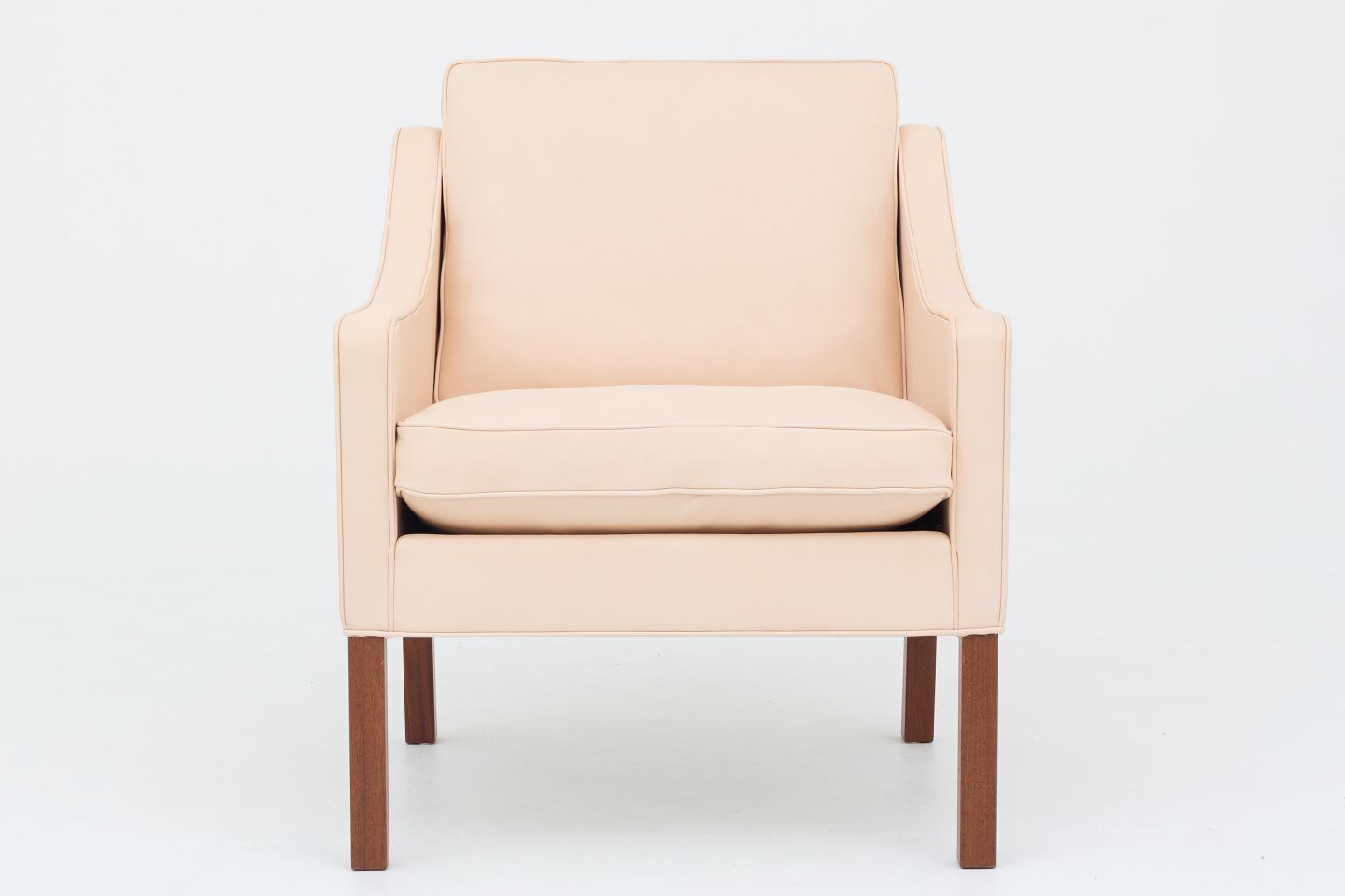 BM 2207 - Nybetrukket lænestol i vegetallæder og ben i mahogni. Vi tilbyder polstring af stolen med stof eller læder efter eget valg