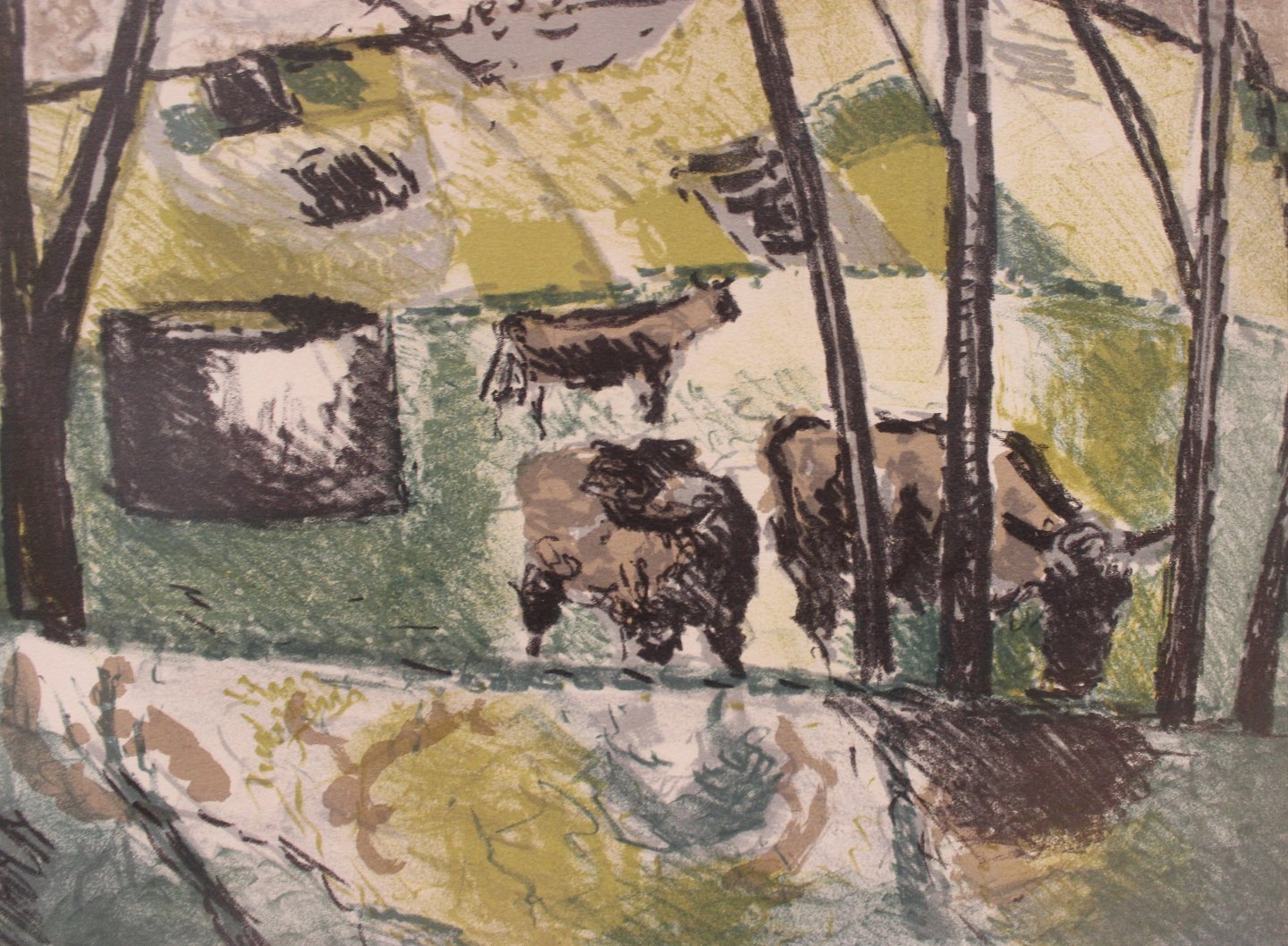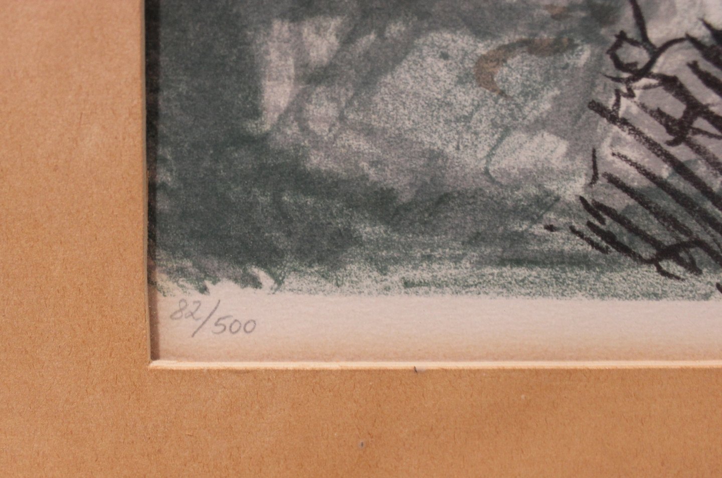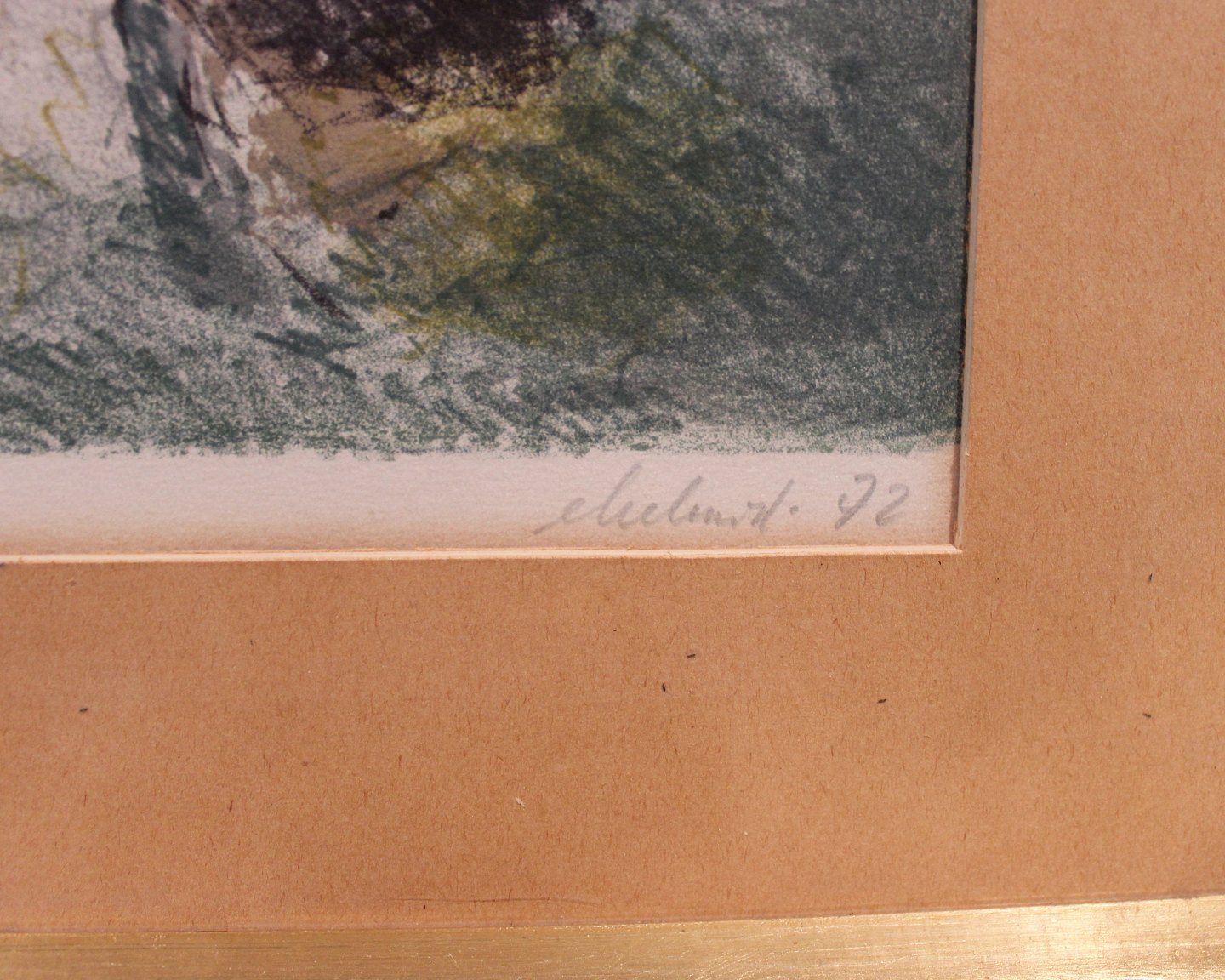 Fint litografi i lyse farver af natur landskab fra 1972, nr. 82/500 og lavet af Poul Ekelund.