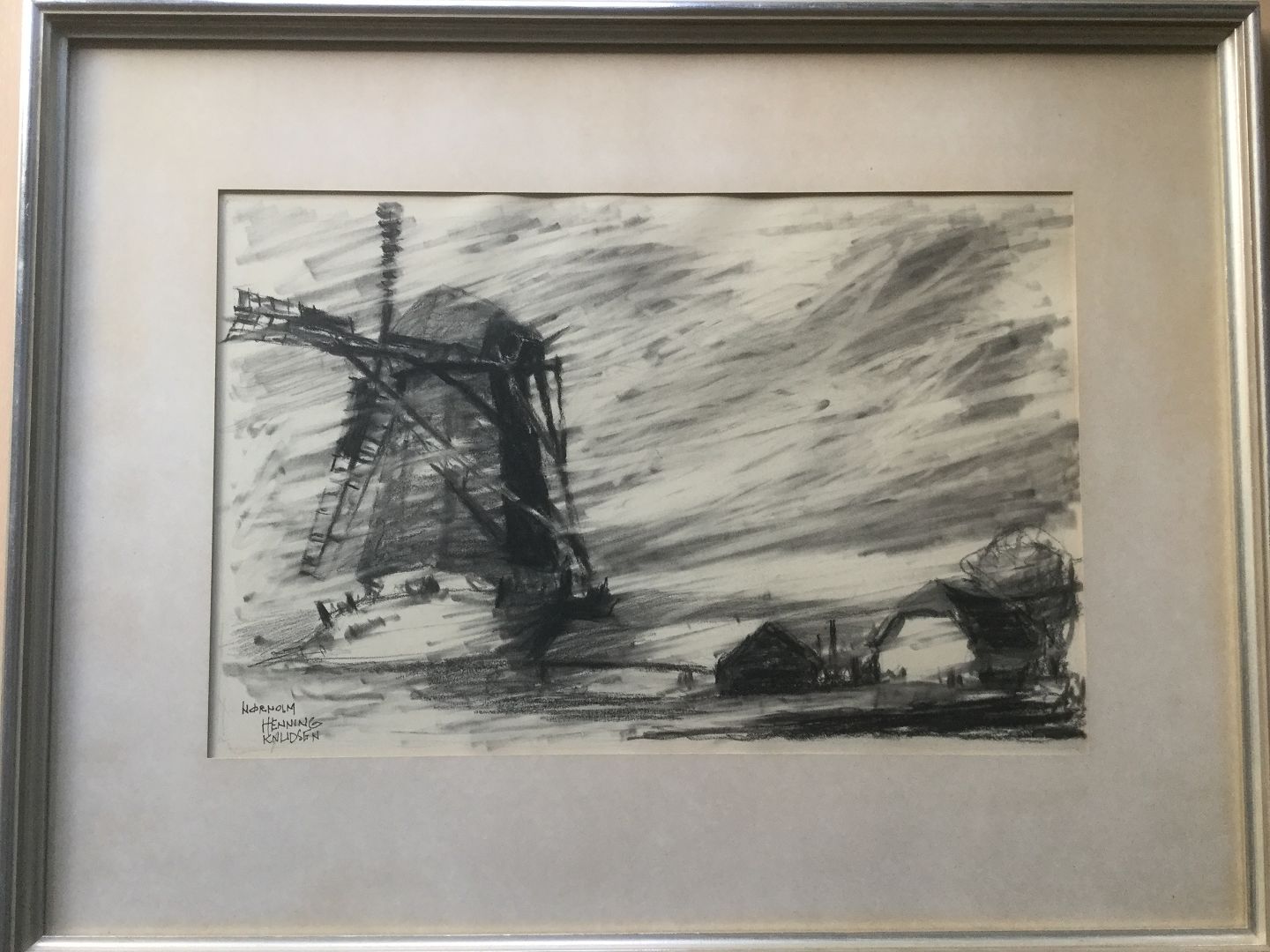 Tegning af Henning Knudsen - "Parti fra Nørholm Mølle"
