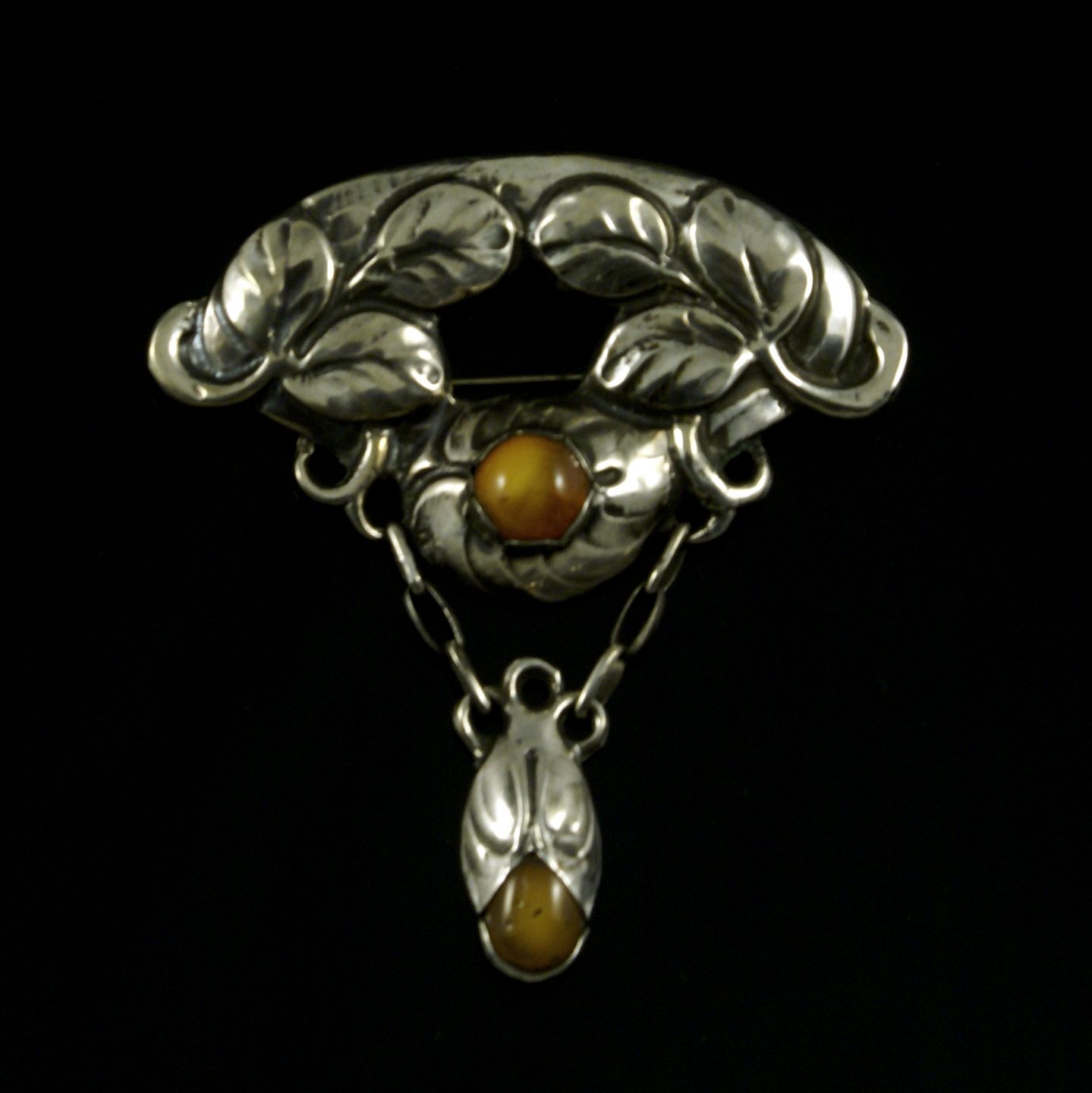 Danish Art Nouveau Silver Brooch with Amber - Knud Georg Jensen.