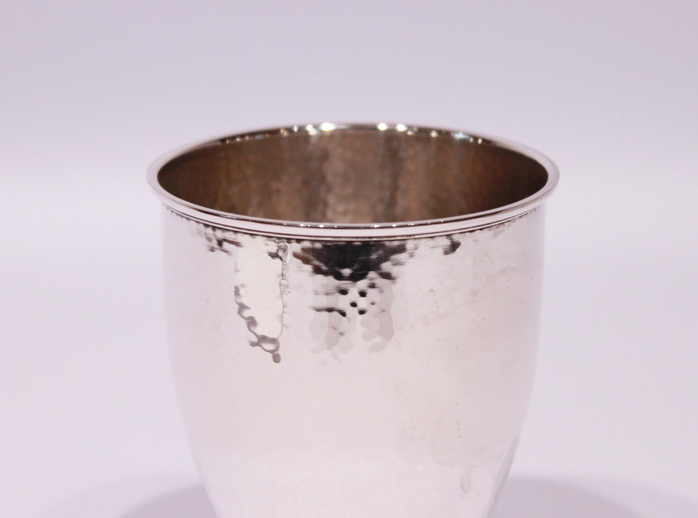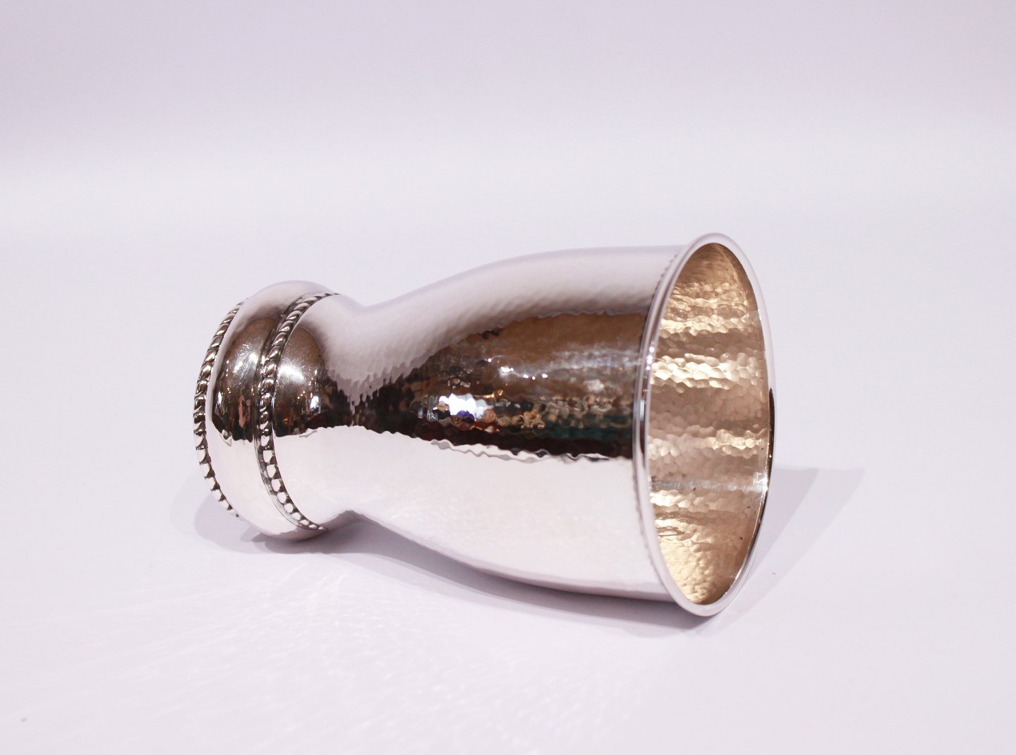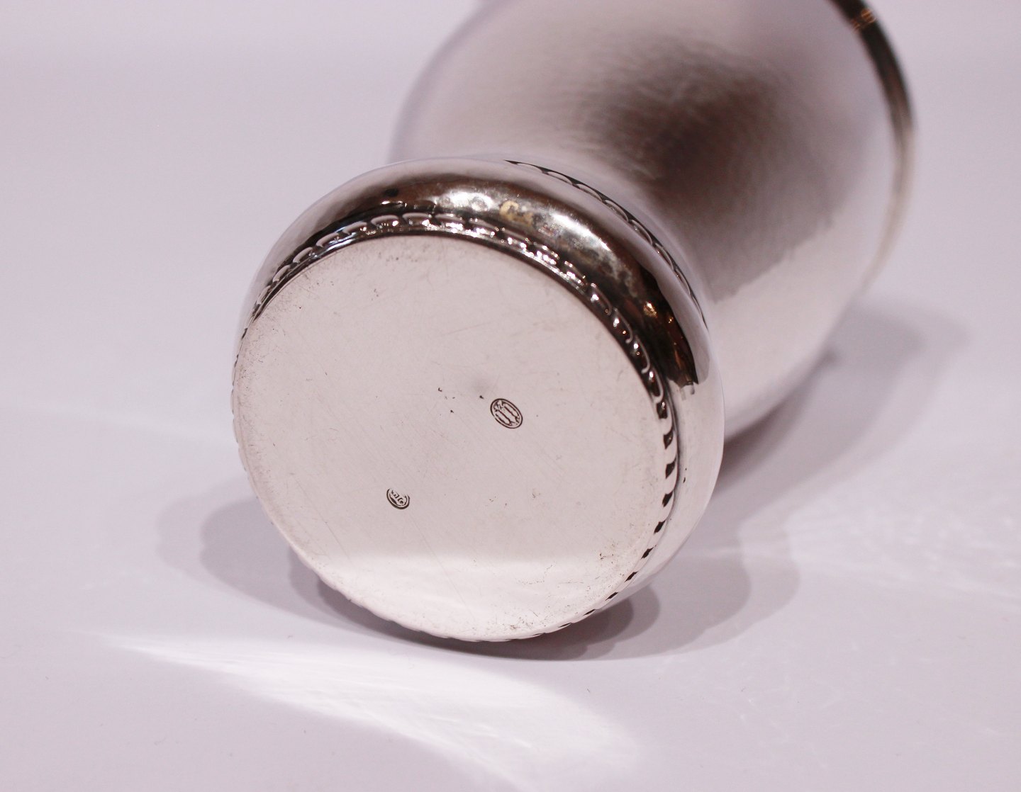 Flot hammerslået vase dekoreret med fin perlekant nederst, tretårnet sølv.