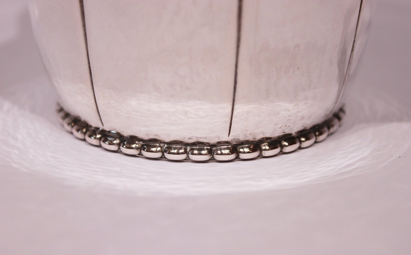 Fin vandkande dekoreret med perlekant og elfenben, tretårnet sølv.